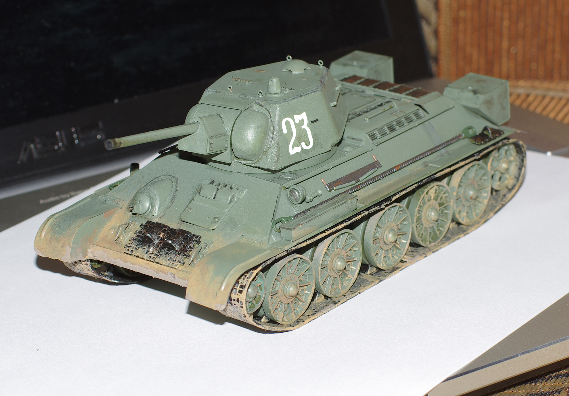 Покраска и сборка т-34 от Звезды. Сразу скажу т-34 попался кривой, особенно башня. Красил звездой и tamiya. Прошу указать недочеты и дать советы) Заранее спасибо!
