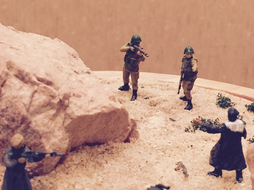 Доброе время суток! неплохо, однако вышло. Аккуратно цельно. но как всегда есть "но". если Вы хотите делать диорамы, в которых помимо простых баталий имеют место эмоциональная составляющая - в данном случае наверняка "дух" орет на каком-нибудь своем наречии мол "не убивай меня, Шурави в кишлаке жена, дети!" а наши в свою очередь возможно кроют отборным матом и соответственно "Ложись, руки в гору, автомат на землю!" видите? - эмоции. я это развожу здесь к тому, что для подобной диорамы маловат масштаб! ведь 72-ой как правило используют для баталий в которых участвуют огромное количество фигурок. Мой Вам совет: попробуйте 1/35. Вполне подходящий масштаб для Вашего отражения характера каждого отдельного героя. Честь имею! :helmet: