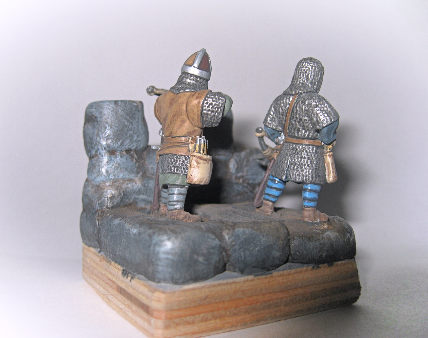 Вот такая виньетка. Арбалетчики от Драбанта (28 мм). Стена - эпоксилин.