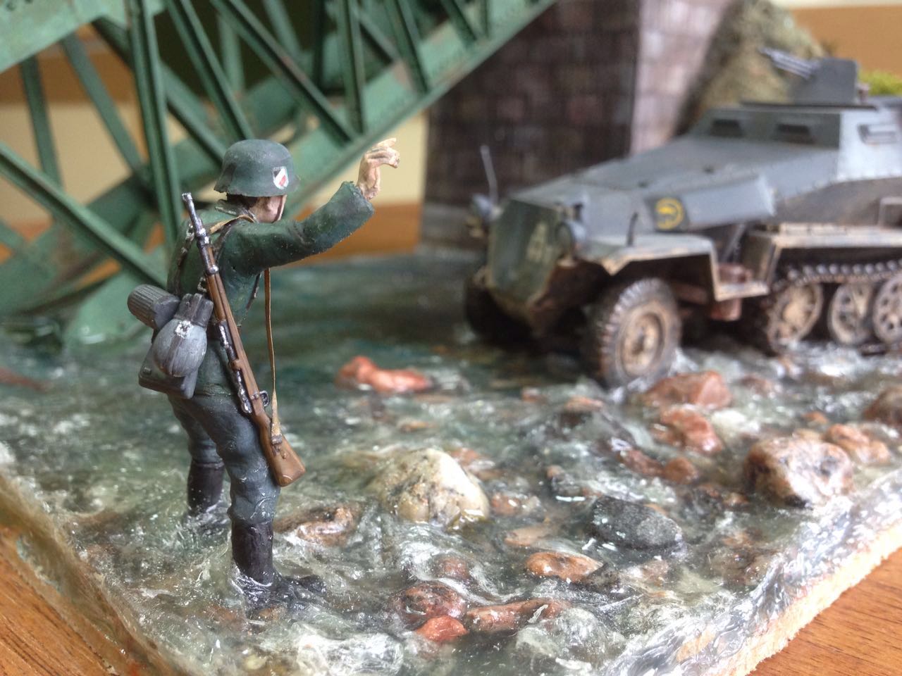 Очень хотелось попробовать воду, где-то увидел на переправе Pz 4, и так как уже был готов ханомаг, решил его разместить на диораме.