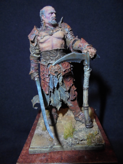 Представляю на ваш суд фигуру интереснейшей фирмы"Nocturne",продолжая свою любимую тему фэнтези.Литье и деталировка на высшем уровне.Но расписывать оказалось сложно,долго разбирался,где какая деталь,фактура,светотени.Но получил огромное удовольствие и ,конечно,опыт.Стражника я сильно"заржавил"и потрепал,мне показалось так.Видел потом роспись этой фигуры с применением техники НММ,тоже получилось неплохо,но я пока так не умею.В росписи использовал акрил Валеджио,масл.краски Мастер класс,пигменты МИГ,немного химии АК.После этой фигурки собираюсь попробовать 28 мм(тоже фэнтези).Приятного просмотра и всем творческих успехов!