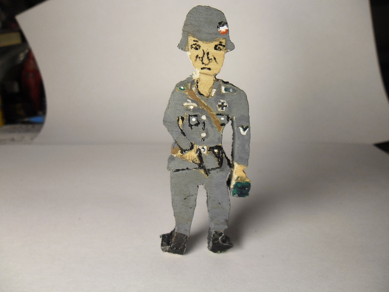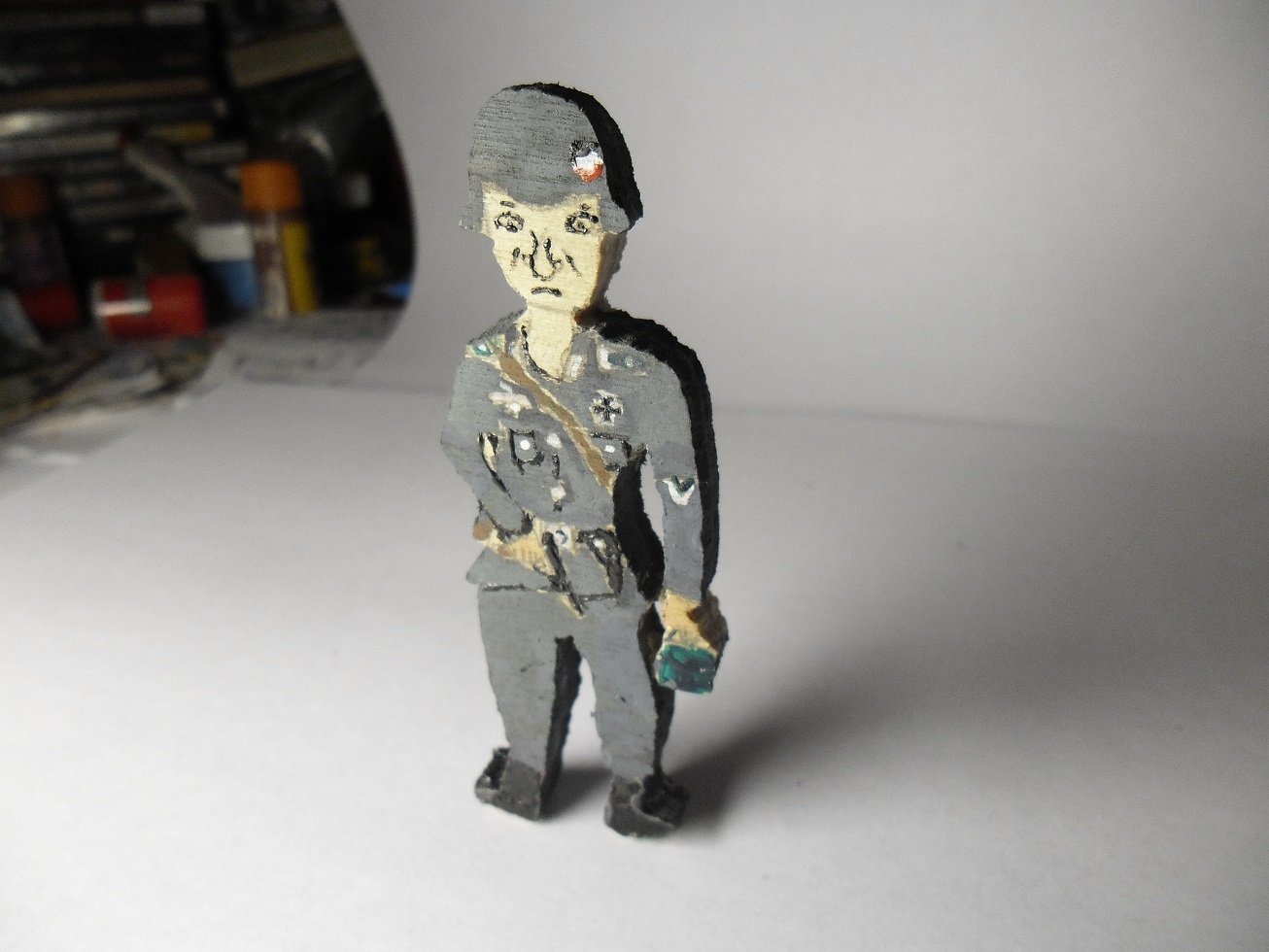 солдат-шутка, 67 мм., выпилен ручным лобзиком из фанеры 8 мм., раскрашен красками Звезда
