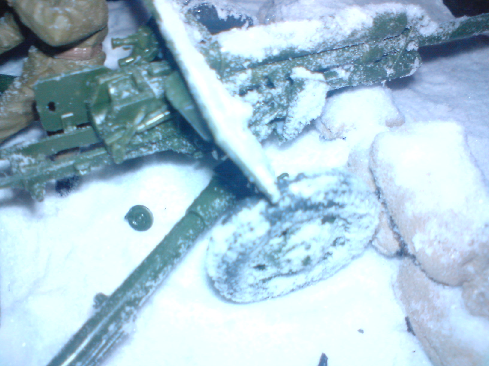 Смотрелось бы лучше если снег был бы утоптан на позиции, следы всякой возни... И мешки действительно не к месту( не понятно от кого и чего они смогут защитить). А в целом нормально сделано, хороший сюжет. С уважением Михаил