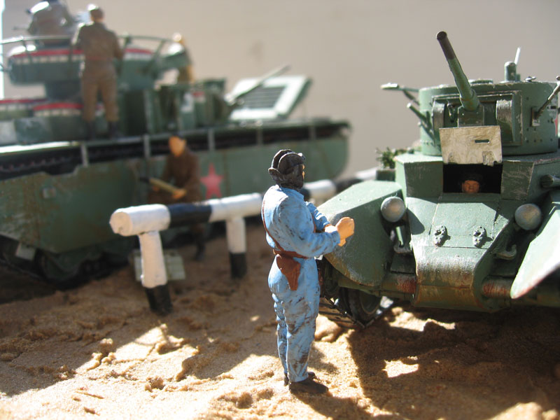 Приступая к работе над данной диорамой крайне желательно было ознакомится с содержанием как минимум 4 источников - Фронтовая иллюстрация "Многобашенные танки РККА", Армада "Танки БТ", "Первые советские танки", сайт по униформа, приведенный выше. Четко определиться по следующим моментам
