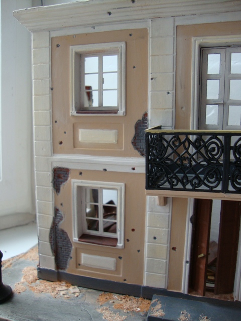 По зданию: нужно еще припылить, загрязнить те места где следы от пуль...