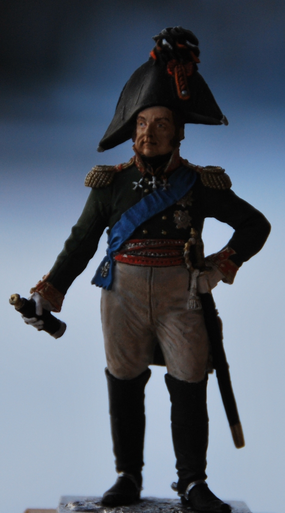 Чингис, Несколько замечаний по униформе...Этишкет белый,кокарду зря серебрянной сделали.она национального цвета.Приборный цвет-не красный......Цвет мундира-тёмно-синий.Кюлоты так же другого цвета..Шпоры тоже желательно сделать металлическими..Обратите внимание на чемодан кавалериста на заявленный 1813г...