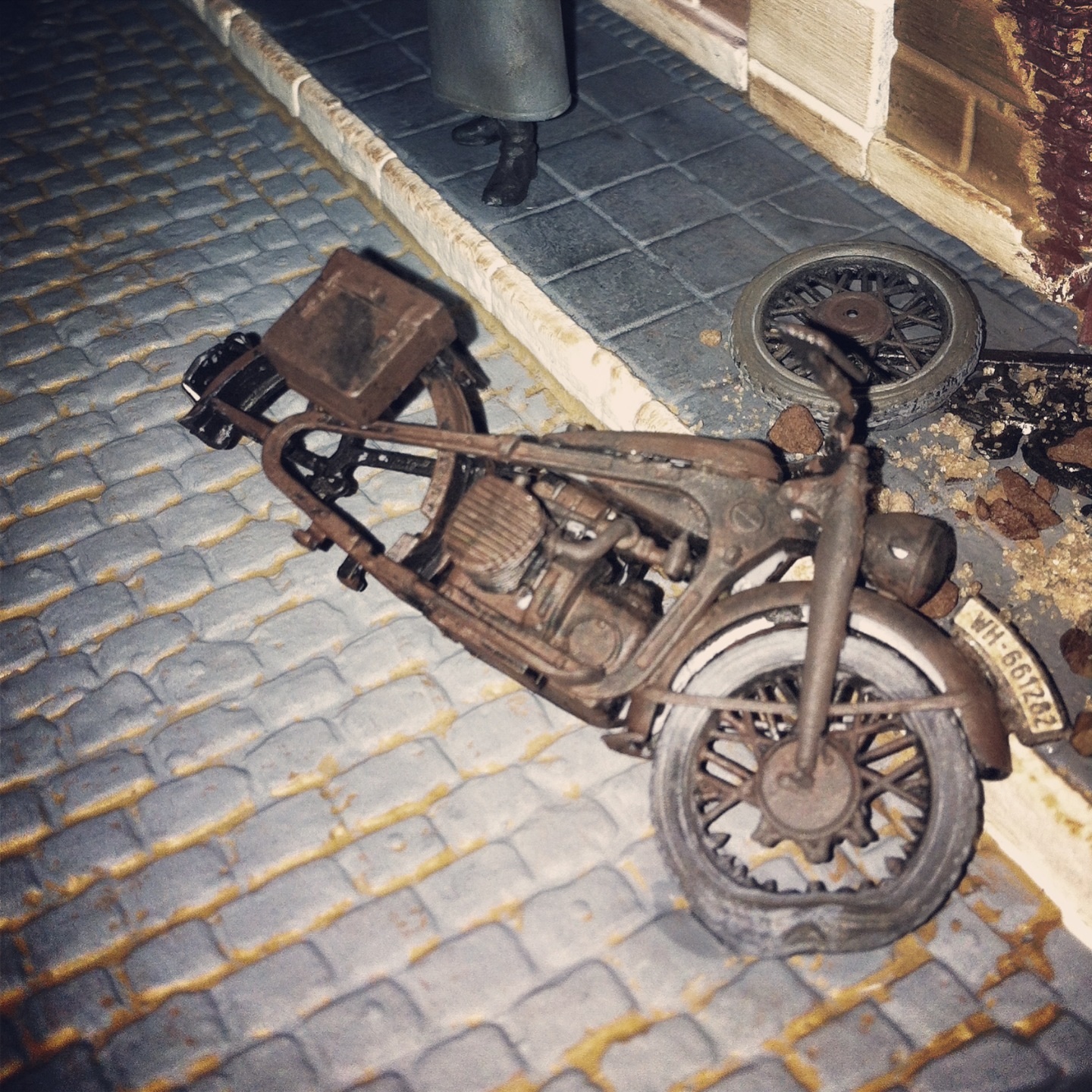 Перекрасил брусчатку и дополнил обломками мотоцикла))) мотоцикл напоминание из детства ))) вспышка осветлила сильно