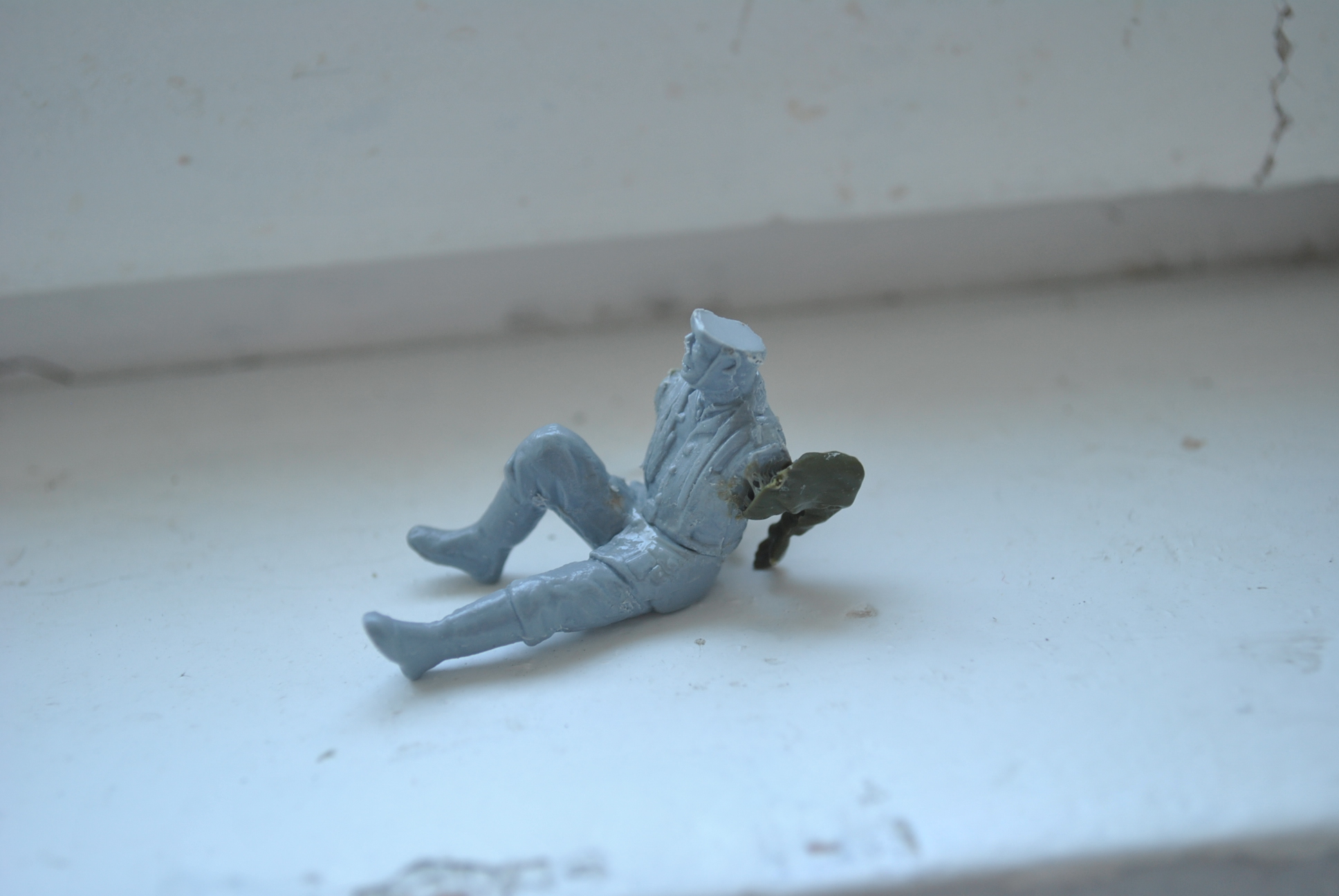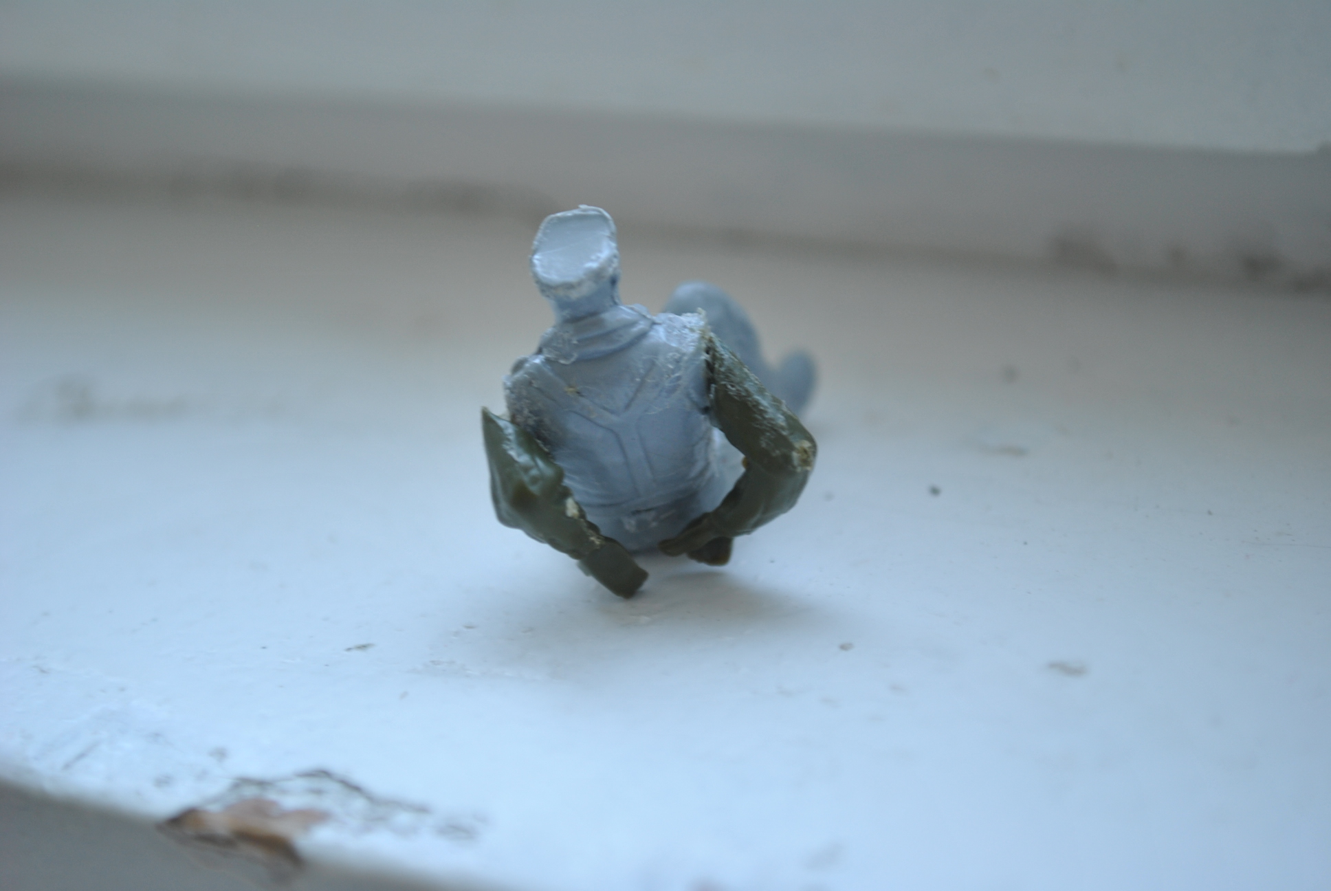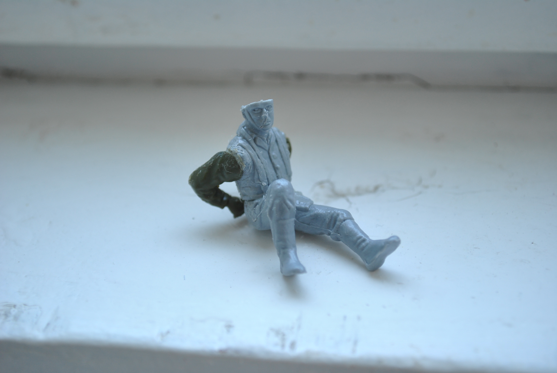 И фигурку, в которой я первый раз применил небольшую конверсию. Заменил немцу руки. Пленный будет.