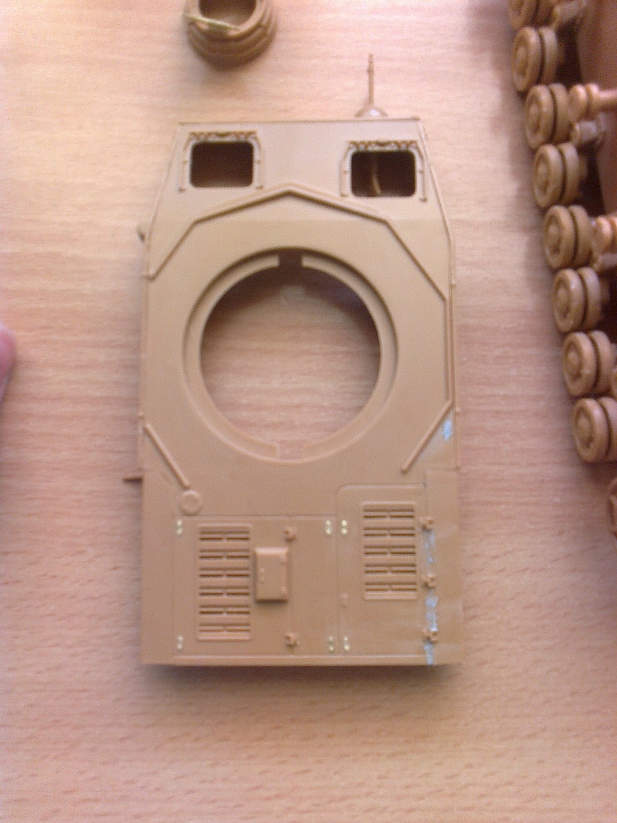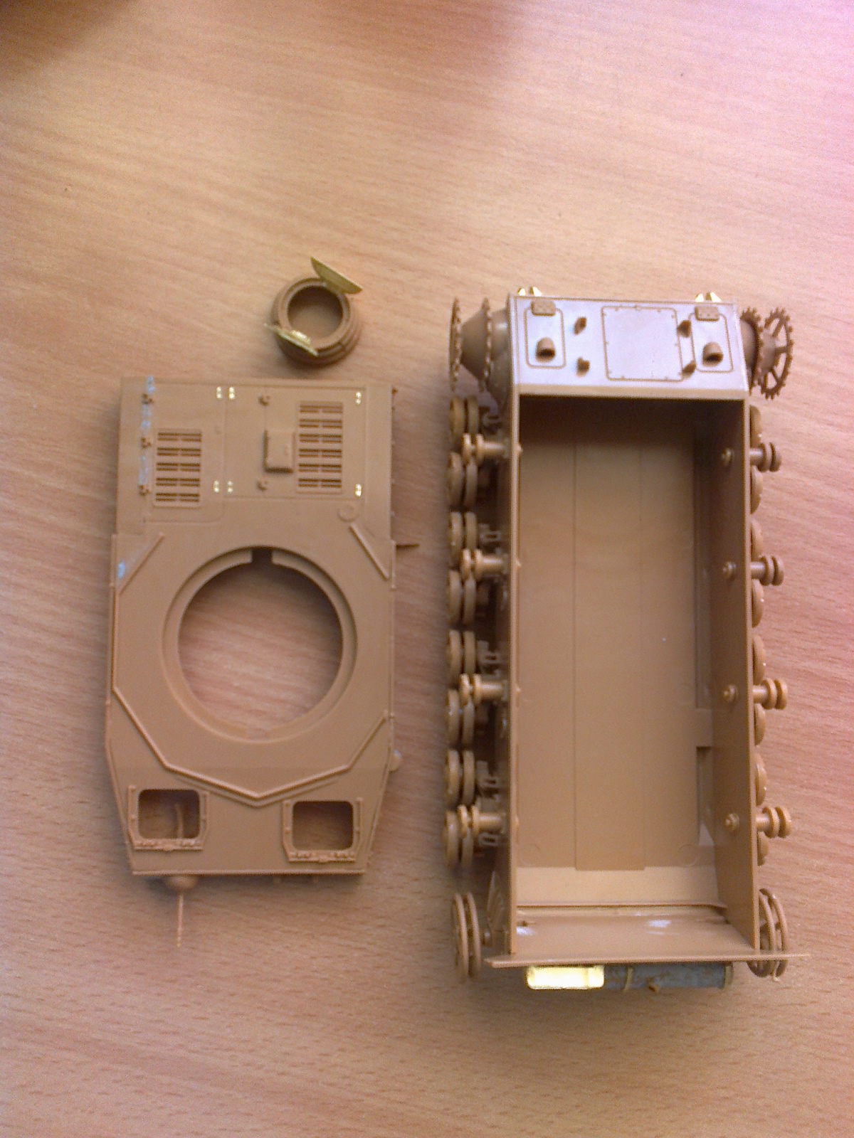 Здравствуйте! Я почти собрала танк. Гусянки не приклеины, и башня тоже.