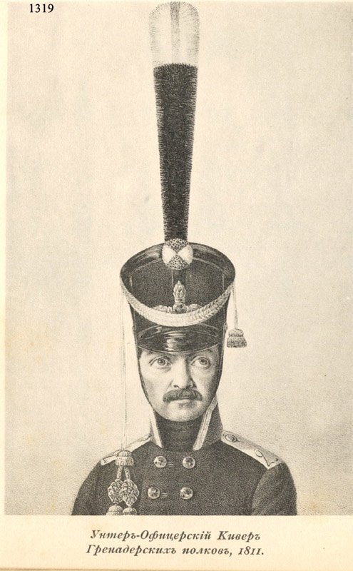 Чингис, это не просто у.офицер, это унтер-офицер гренадерских рот. И будьте внимательнее: отличия унтер-офицера состояли не только из галуна и белой верхушки султана, но и в репейке, и в примеси черно-оранжевых нитей в кистях этишкета и темляка:
