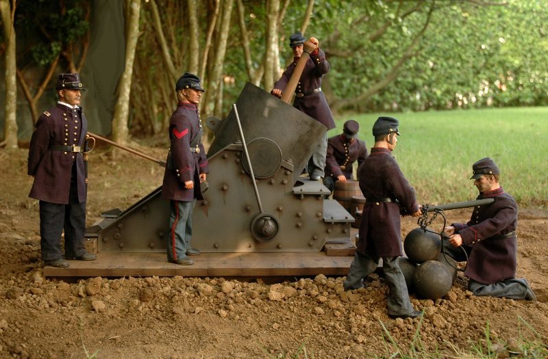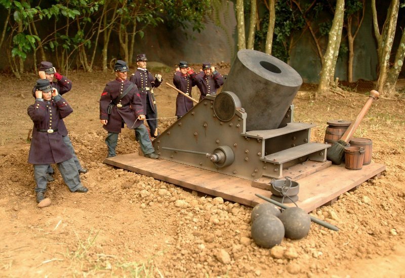Может быть немного не в тему .В свое время хотел сделать мортиру Диктатор, правда на жд платформе,в принципе она не очень сложная, да все "руки не доходят" .Ну а тут просто фотки понравились .Масштаб и производителя не знаю.Может 6й масштаб,?