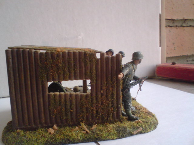 Ну, и италовский "командный пост" - совершенно загадочная конструкция. Как держатся вертикальные брёвнышки над амбразурой, на что опирается балка перекрытия, и от чего вообще может защитить подобное сооружение - сплошные загадки... Лучше уж сделать самостоятельно что-то более реалистичное из подручных материалов.