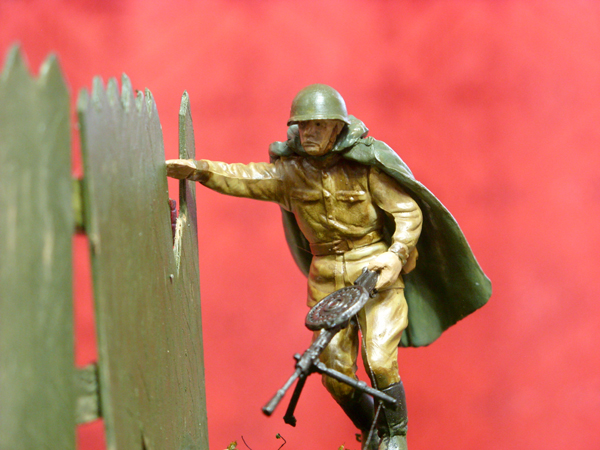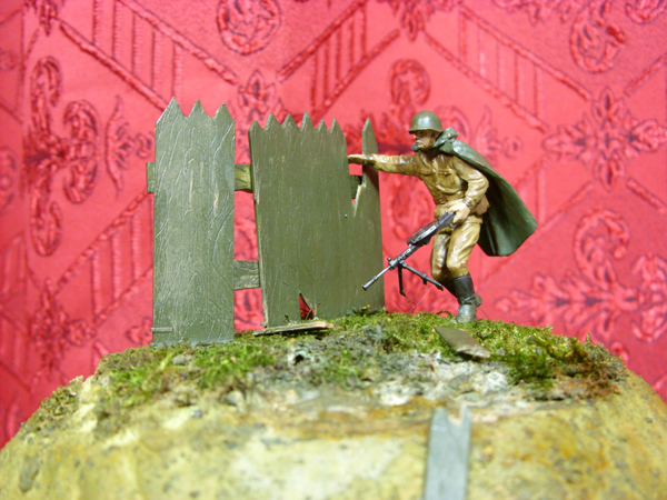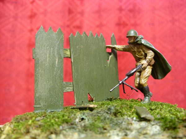 Чесно скажу забор мне не понравился надо было каждую штакетину отдельно делать и размер по-меньше.Первого своего солдата я пытался красить краской "Моделист" после этого я эти краски выкинул а солдата разобрал на запчасти, заказал Темперу питерскую "Мастер класс" и не нарадуюсь и тебе советую(Разбавляется водой, не блестит, не воняет, хорошо ложиться на пластик). посмотри мою тему в этом же разделе там мои первые "темперные" солдаты.