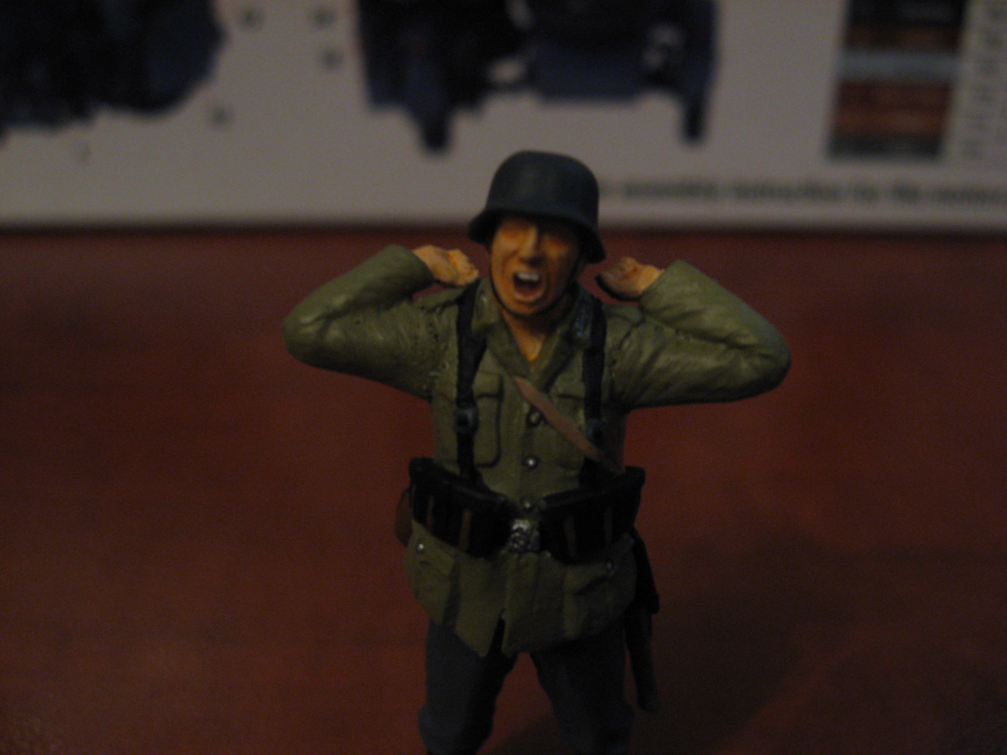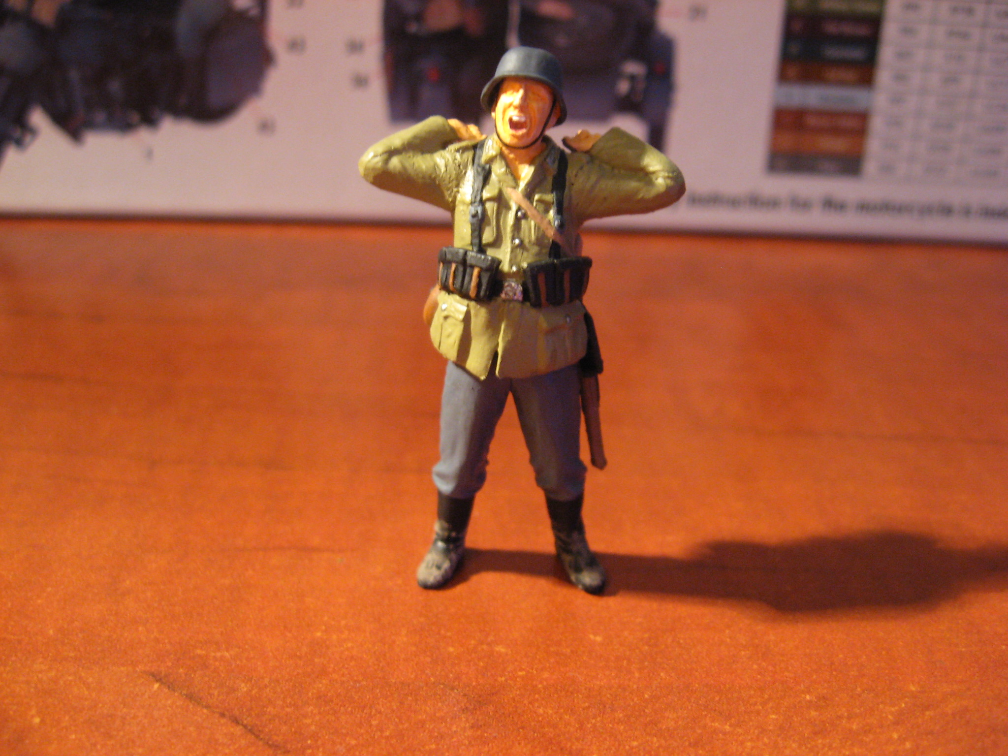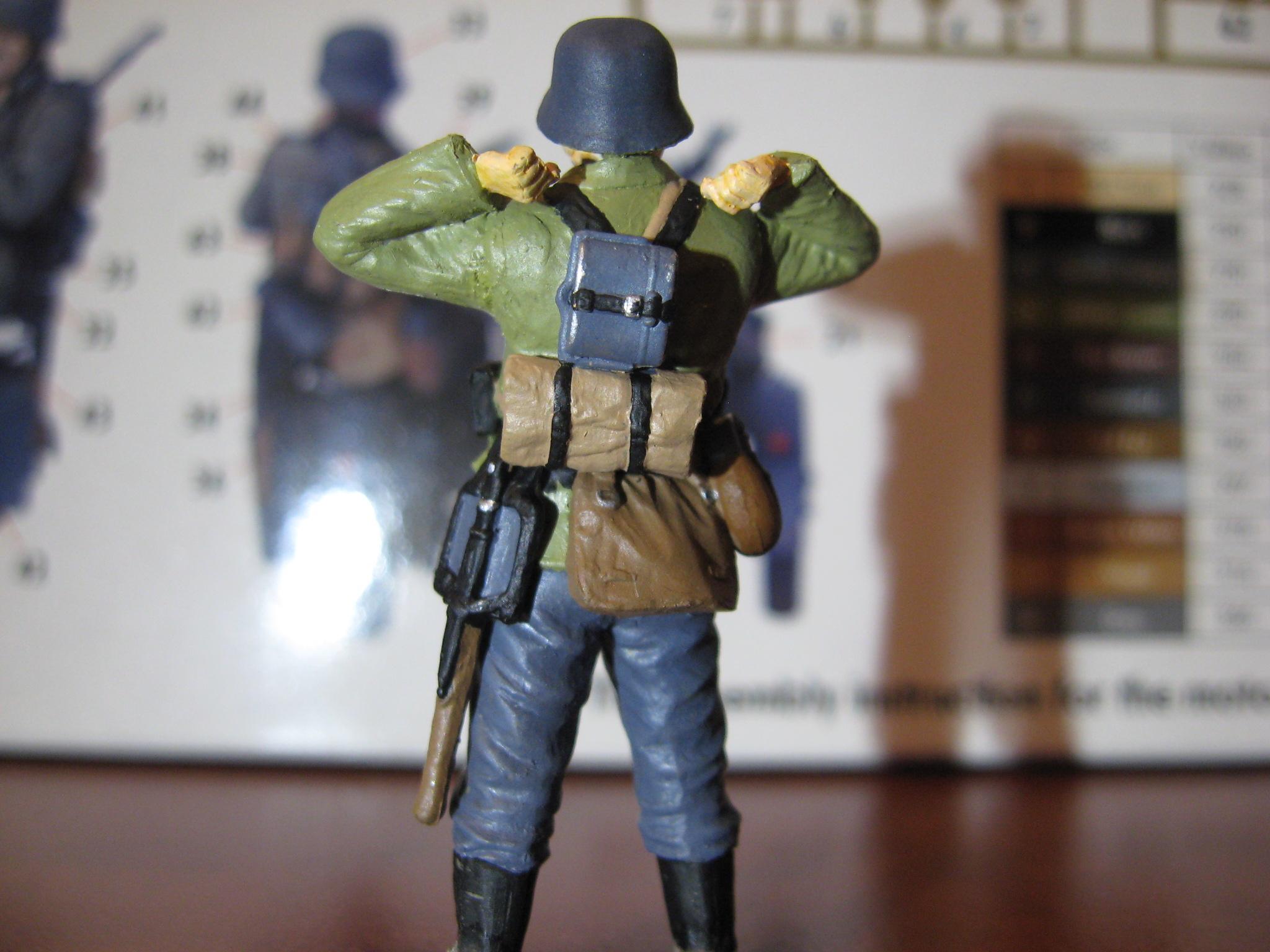 мда... похоже на моё творчество год назад :)фотки конечно ужасные и трудно что-то разобрать,но попробую оценить: аккуратно-это плюс,котелок и китель не того цвета, фляга висит не на своём месте.она крепилась за колечки на сухарке,это начало войны,поэтому нелишним щиток на каске намолевать,фигурка блястить-это минус,нет работы с тенями,тонировку лично я вообще не вижу,вот смотрите и учитесь как оно должно быть: