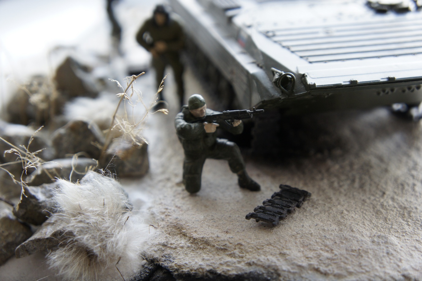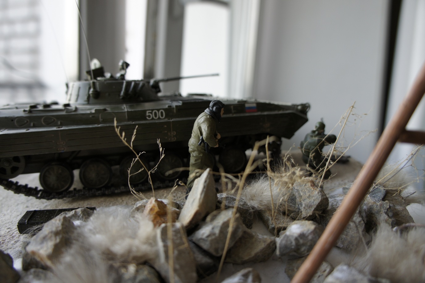 Все модели от звезды,бмп без собственных доработок,крашена аэрографом.Масштаб 1\35.Действия происходят на северном кавказе,во время чеченской компании...