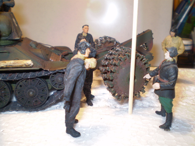 т-34 с минным тралом.Звезда.фигурки тоже Звезда.окраска ПВА темпера.пигменты MIG,и российского производства.ствол и траки Эдуард.