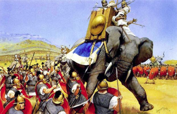 У Ганнибала были североафриканские словы, они вполне приручаемы и мельче индийских (до нашего времени не сохранились).Пожтому в битве при Рафии индийские их и прогнали.