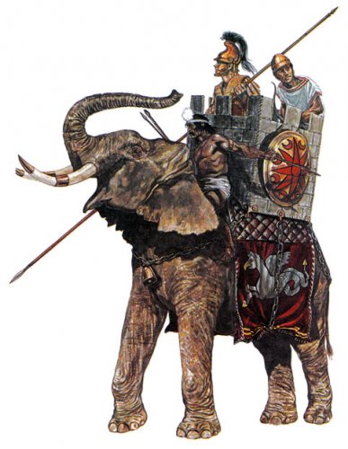 Хоть первый опыт не вполне удачен, я планирую развить тему слонов. Думаю сделать слона из армии Ганнибала, вот только никак не найду фото,- может кто то поможет?