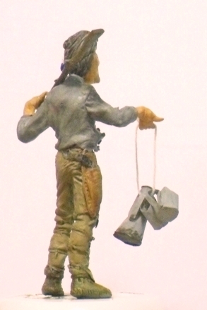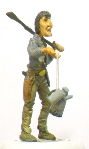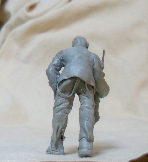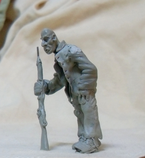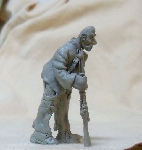 Вот ещё "междудел", сваял вчера на дежурстве. Гражданская война в США, сражение при Чанселорсвилле. Солдат-северянин из корпуса Ховарда,дивизии Девенса,бригады фон Джилдзи. Внезапная атака Джексона "Каменная Стена" обратила бригаду в паническое бегство. Этот янки только и успел накинуть китель, впрыгнуть в ботинки и схватить ружьё. В бегстве порвал штаны и ботинок. Умышленно карикатурная фигурка. (Сейчас смотрю и понимаю: на будущее головы надо делать больше, так прикольней).Масштаб всё тот же: плюс/минус 75.