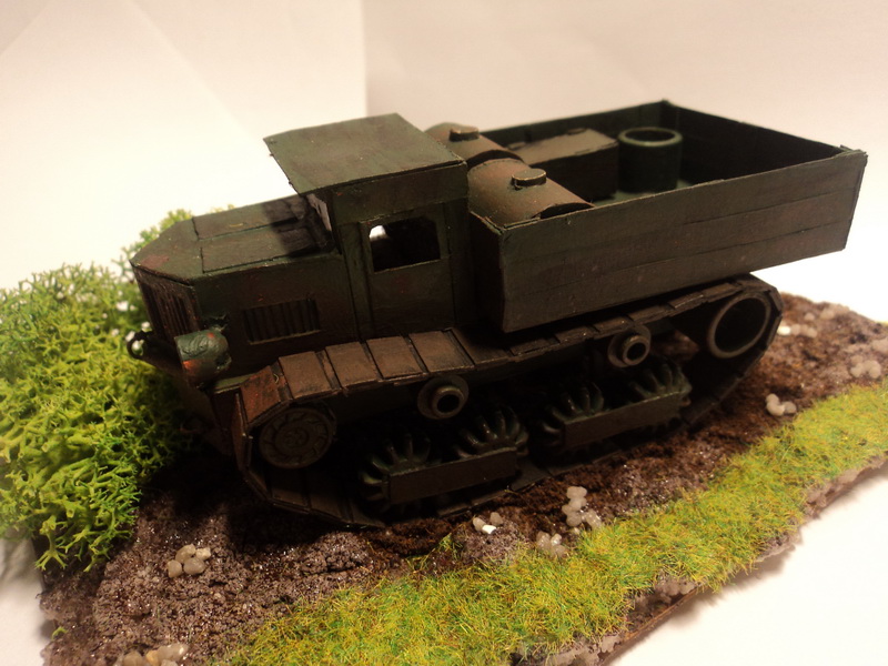 Теперь о модели.Модель армейского тягача сделана из картона и пру деталей из детского лего.