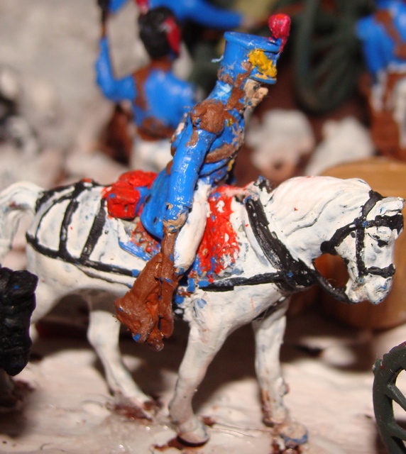 Слово одно напрашивается - ужас!!! Мало того, что во многих местах на фигурках видня совершенно не нужная там коричневая краска, так ещё и аккуратность исполнения - ни к чёрту. Композиция во многом бы выиграла, если бы вы просто аккуратно всё покрасили.