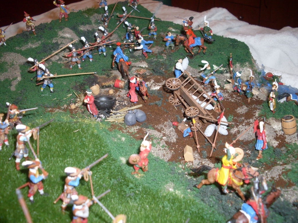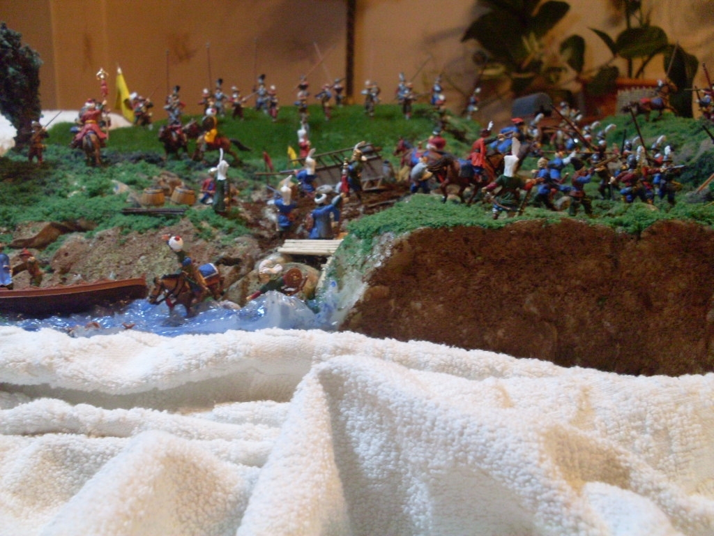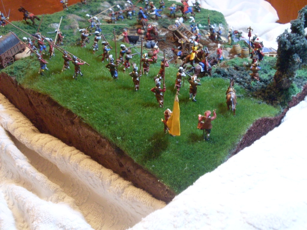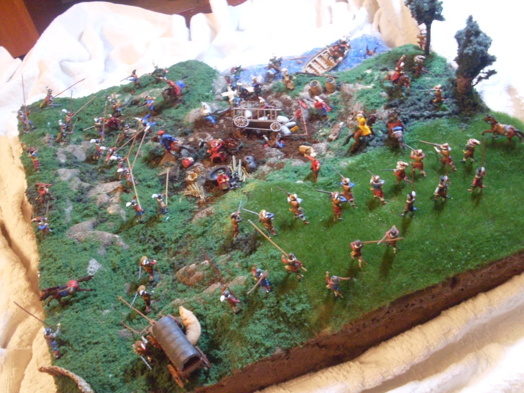 Чёткая граница между разным травяным покровом бросается в глаза, а в остальном - очень хорошо! Я так понял, это самый финал битвы? Последний залп стоящих на холме - и можно собирать трофеи...