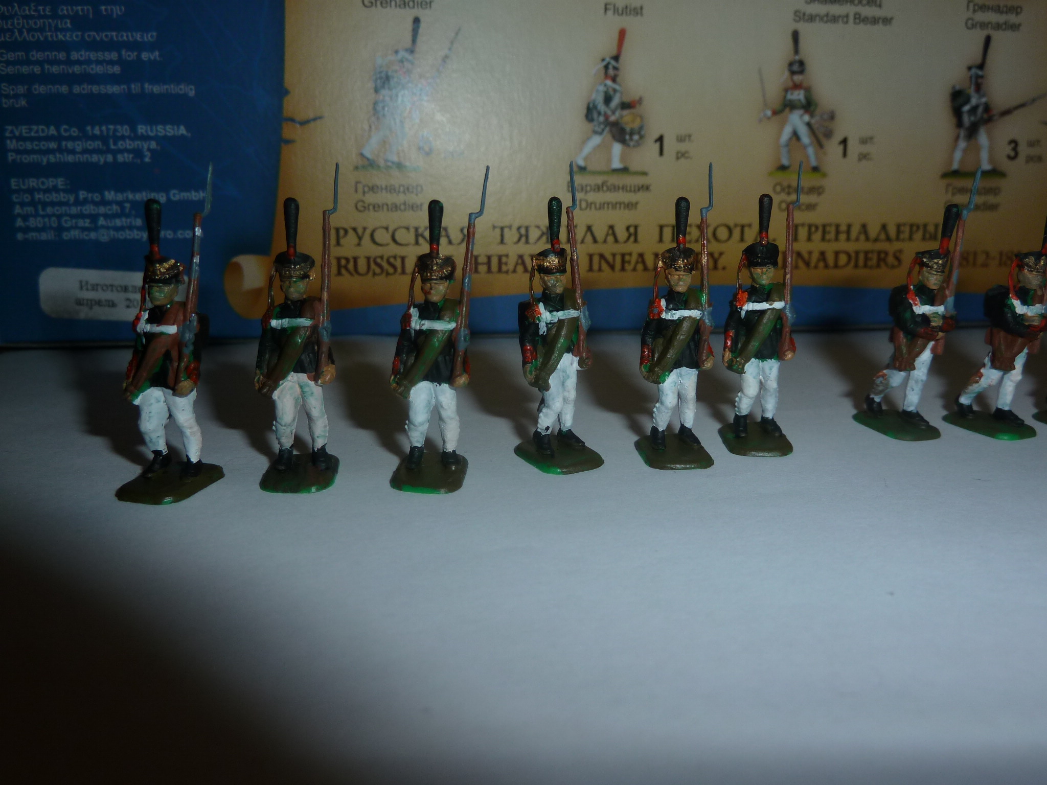 Вот решил представить вашему вниманию русских гренадеров и тяжёлую артиллерию России. Я впервые расписываю фигурки в 72 масштабе.Работы ещё предстоит много, ещё хочу французиков добавить,конницу,"слепить" бастионы и.т.п.(дела продвигаются медленно потому что работаю один над фигурами ,да и сами понимаете школа ,тренировки и.т.д.) :idea: На идею создания диорамы подтолкнула компьютерная игра (NAPOLEON:total war). Сразу заинтересовался тем периодом.(жду критику, предложений,замечаний :helmet: .