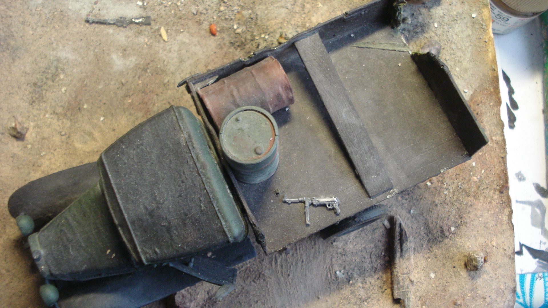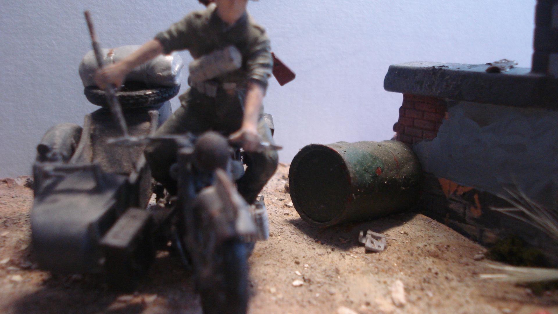 диорама была сделана 2 года назад,на тот момент мне было 13лет.в работе использовались фигуры dragon,полуторка от звезды,бочки и ведро-тамия,окрашивалось акрилом звезды.основание-гипс.битый кирпич-крошеный гипс.жду справедливых комментариев.