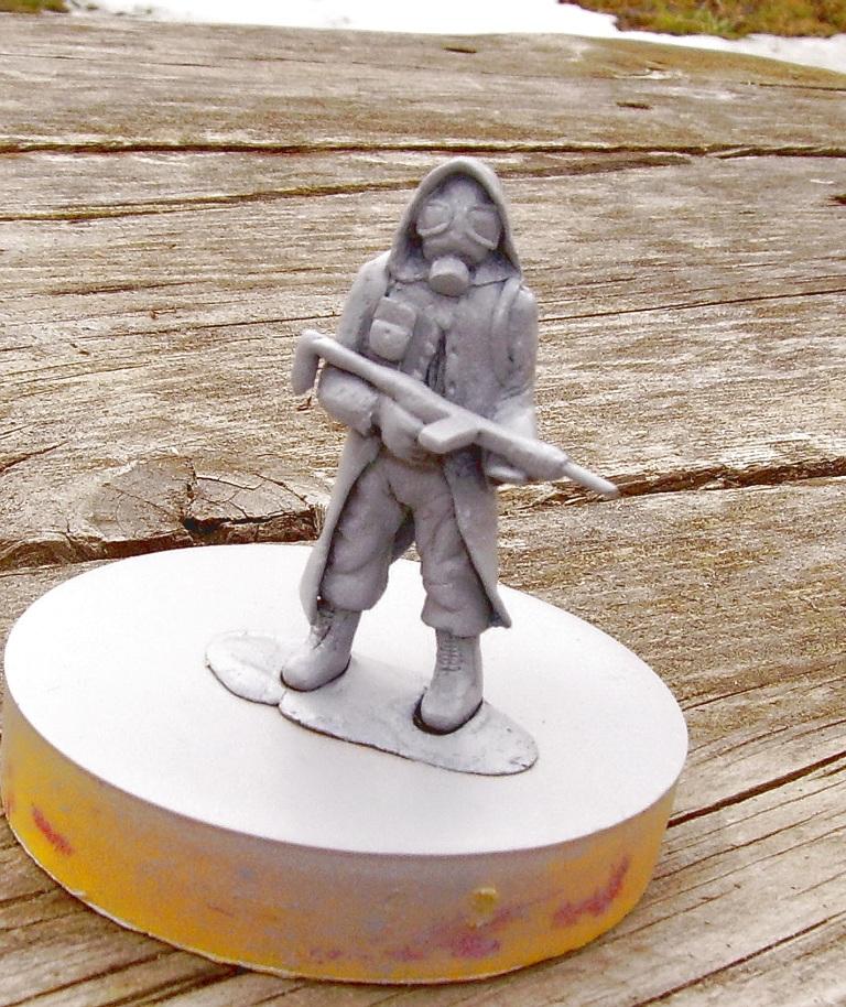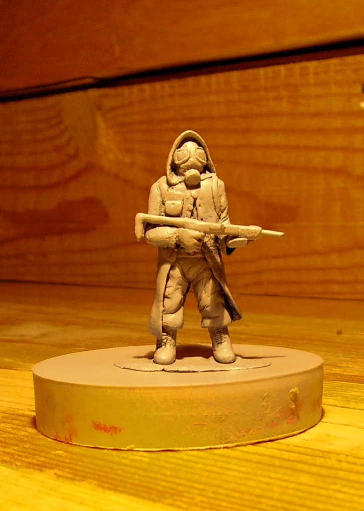 Понравилось.Немного напоминает сталкера Дроя из Вашей предыдущей работы. Неплохо. Только стекла на маске далеко друг от друга. Приклад неудобно расположен для стрельбы, его надо было под руку убрать. У самого были такие же трудности по началу, в таких случаях делал приклад в сложеном состоянии. Тоже работаю с эпоксилином (жена не разрешает термопластику в духовку пихать, боится что отравлю