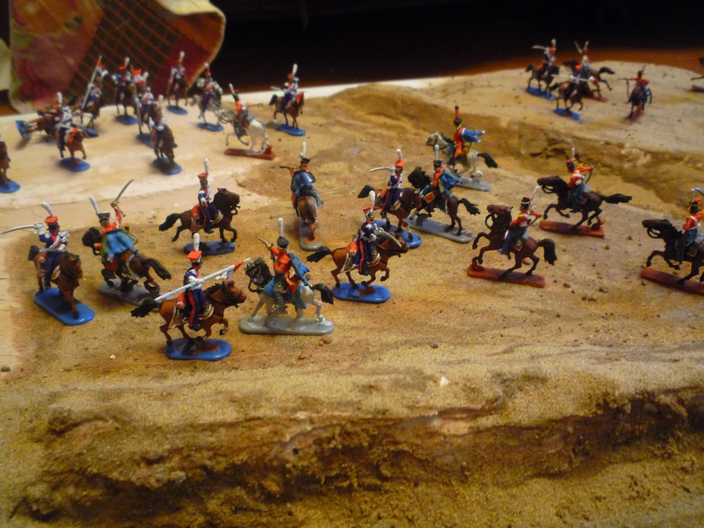 При этих условиях диорама должна быть примерно 50 метров на 50 метров, с масштабом фигурок 1 к 500, не крупнее....