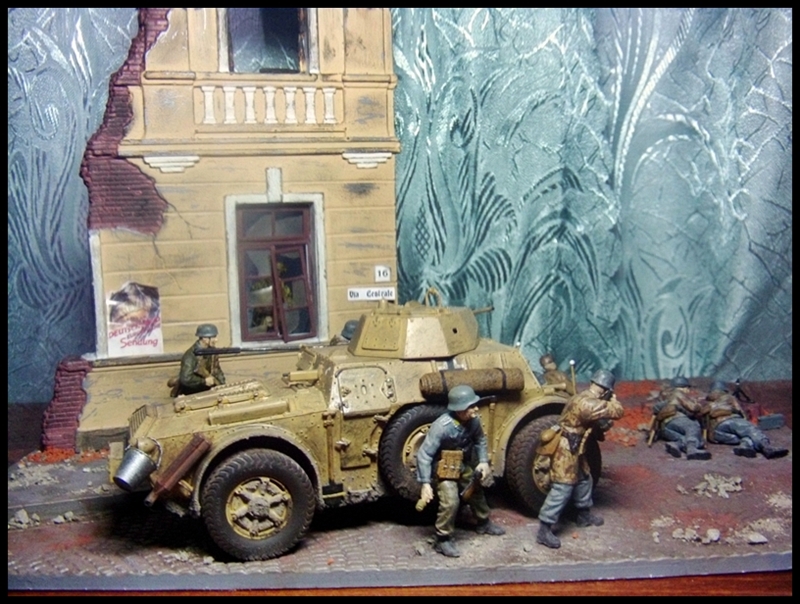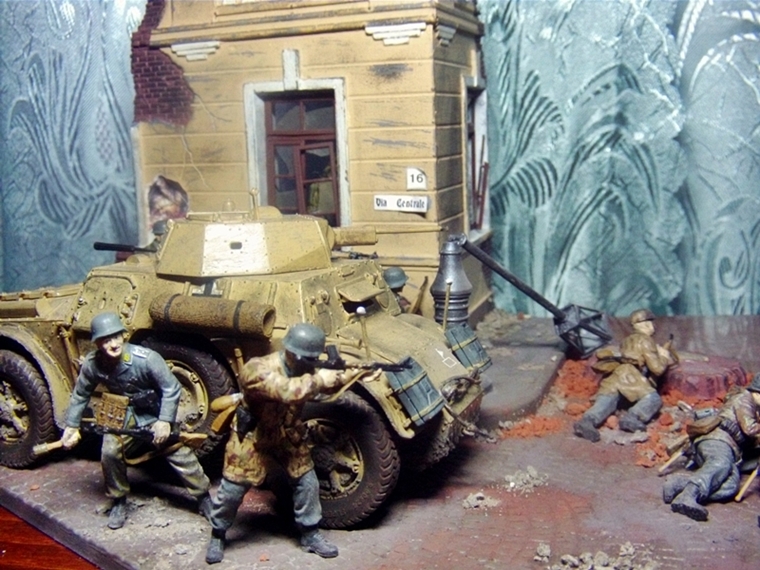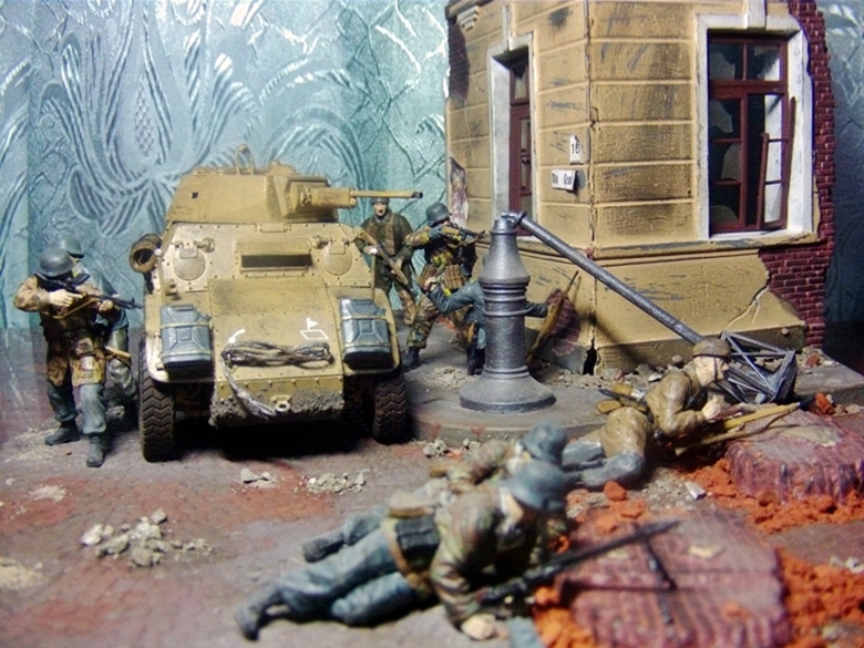 Всем привет. Выставляю на ваш суд свою диораму в 1/35. Делал с исторической привязкой бои в Италии 4-ой парашютной дивизии. Бронеавтомобиль от фирмы Italeri, фигуры от фирмы Master Box и Dragon основание MiniArt. Красилось все акрилом, пачкалось пастелью, руины раскрошенный кирпич.За все комментарии заранее спасибо.