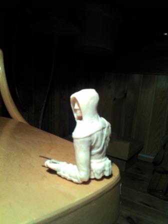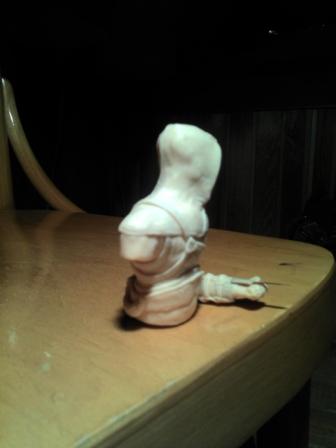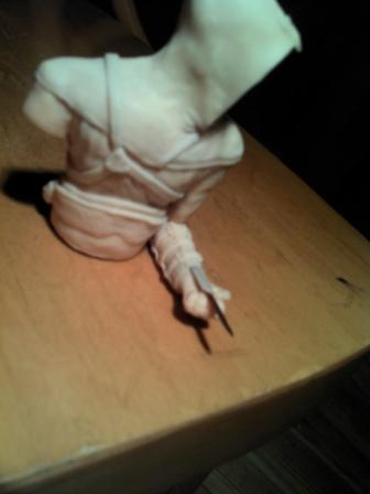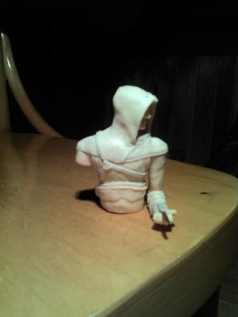 Вот как и обещал. Лепил из термопластики "Fimo". масштаб примерно 75 мм. Вот какой вопрос хочу задать: Как думаете, правую руку нужно продолжать, если да, то как? Просто так он как-то без правой руки на инвалида похож. Работа пока ещё в процессе. Планирую подставку, меч, метательные ножи и нож на спине.