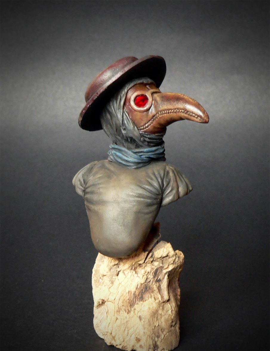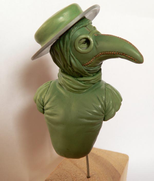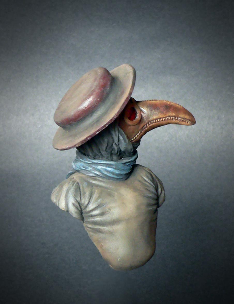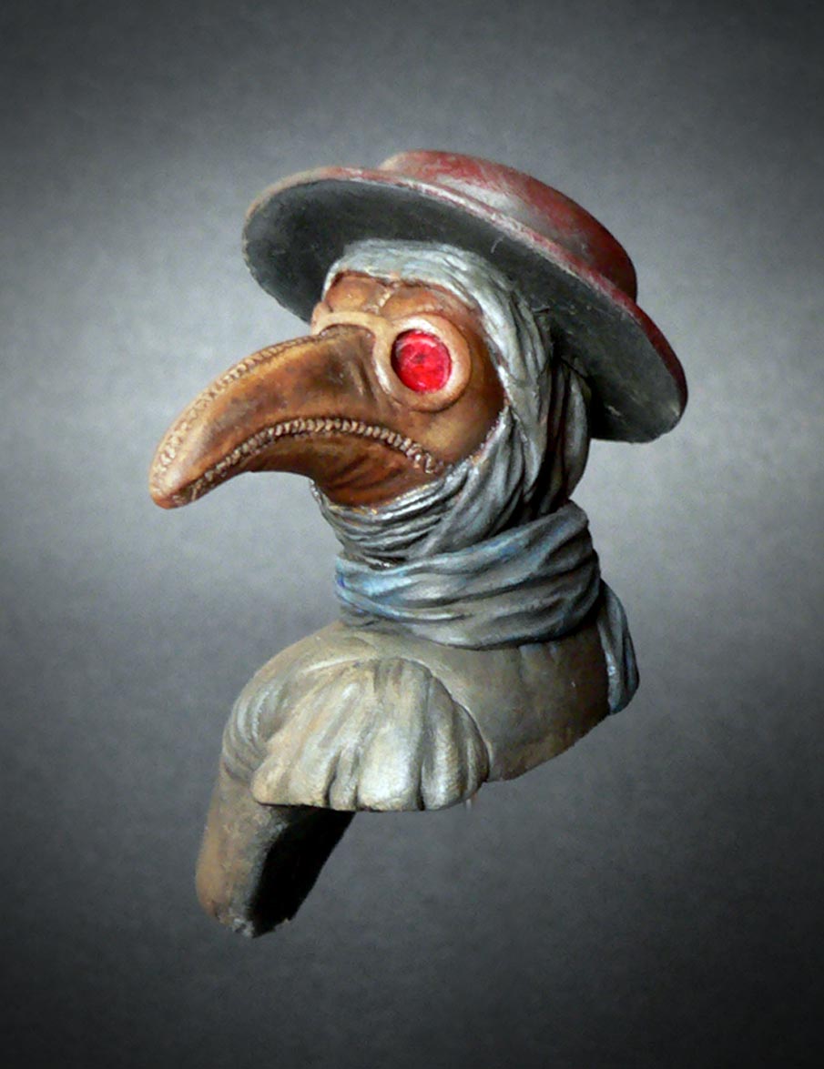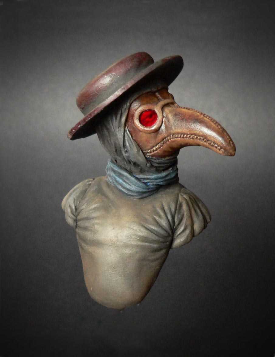 Клюв был сделан из кожи и наполнен лепесткaми цветов, трав и благовоний. Глазницы были покрыты красным стеклом, чтобы отпугнуть демонов. Доктор держал длинную палку, чтобы исследовать трупы, не касаясь.
