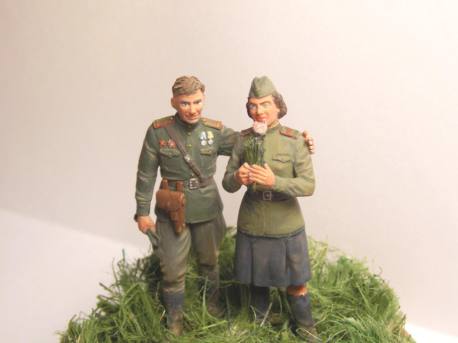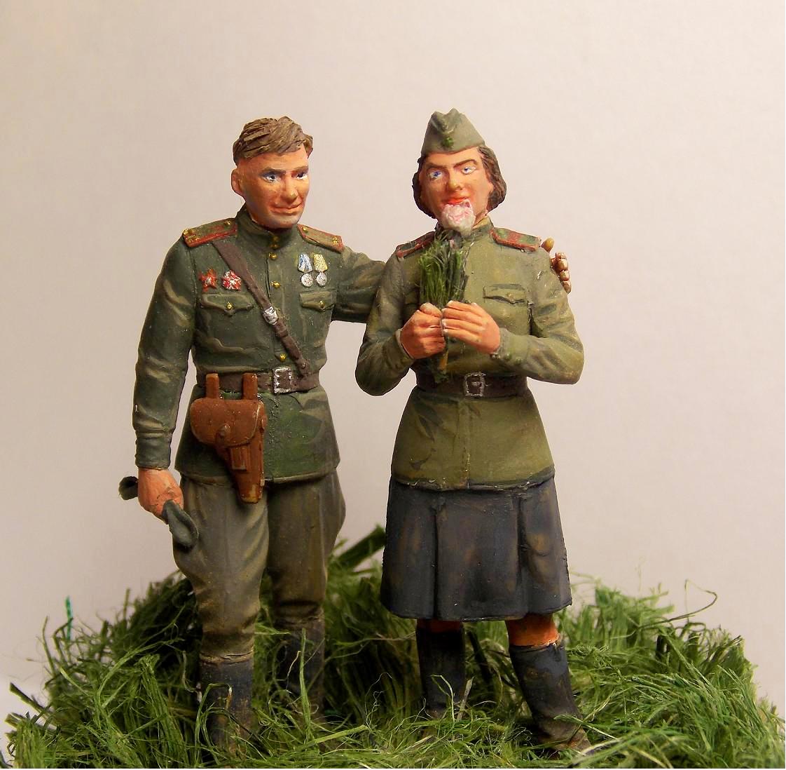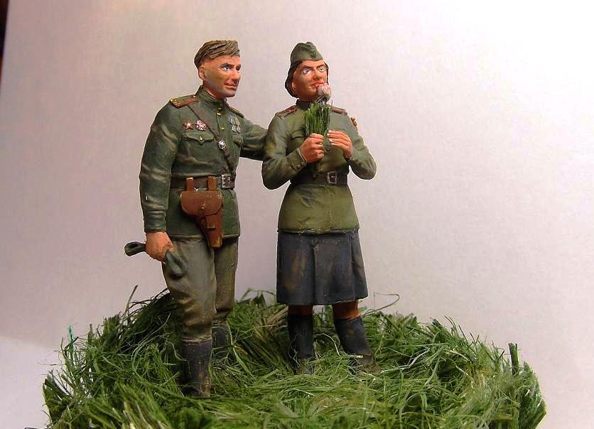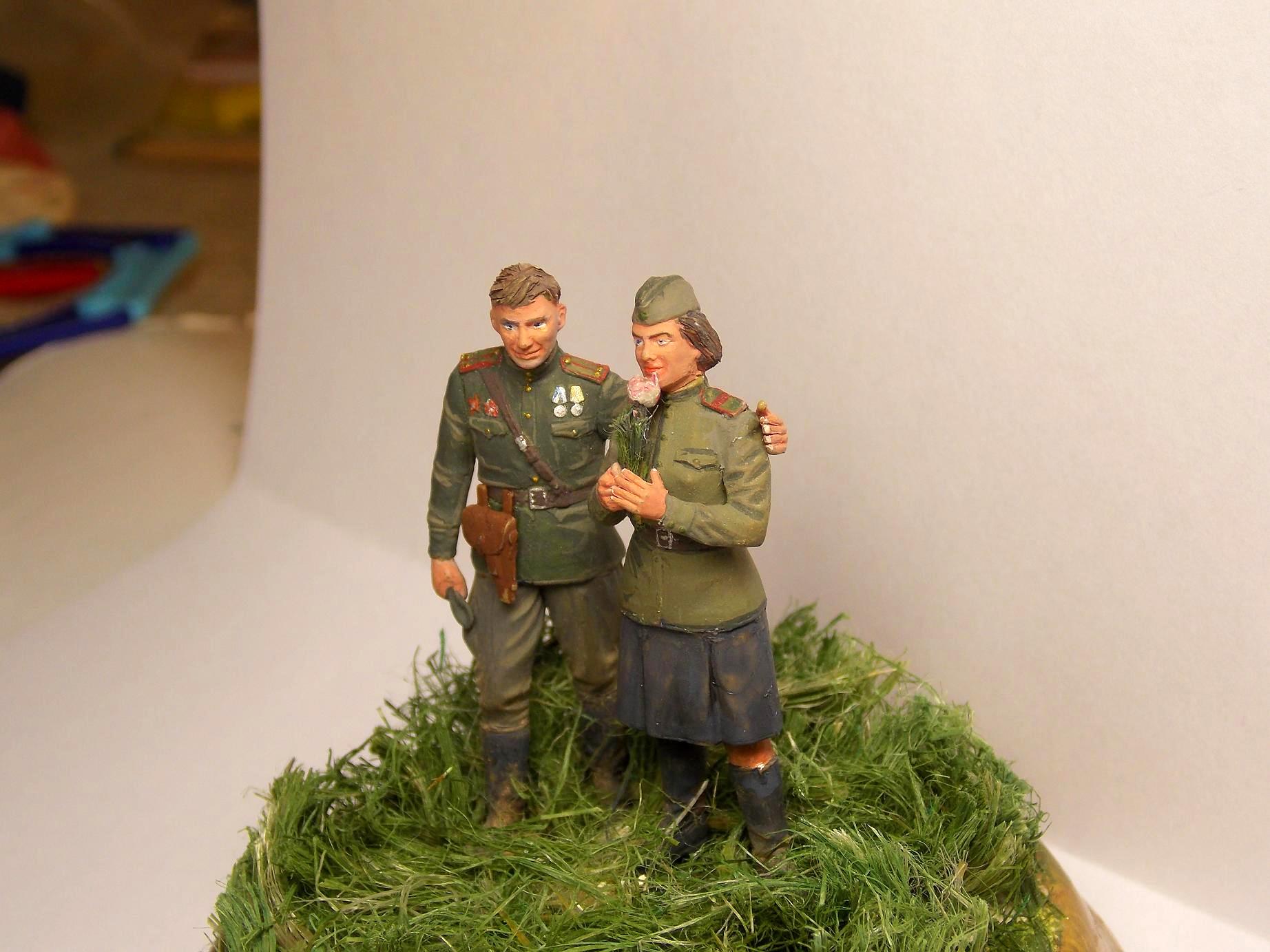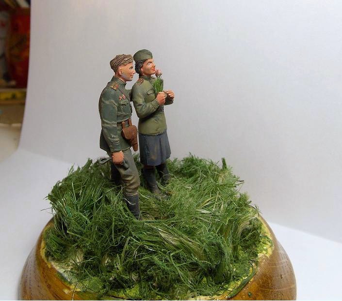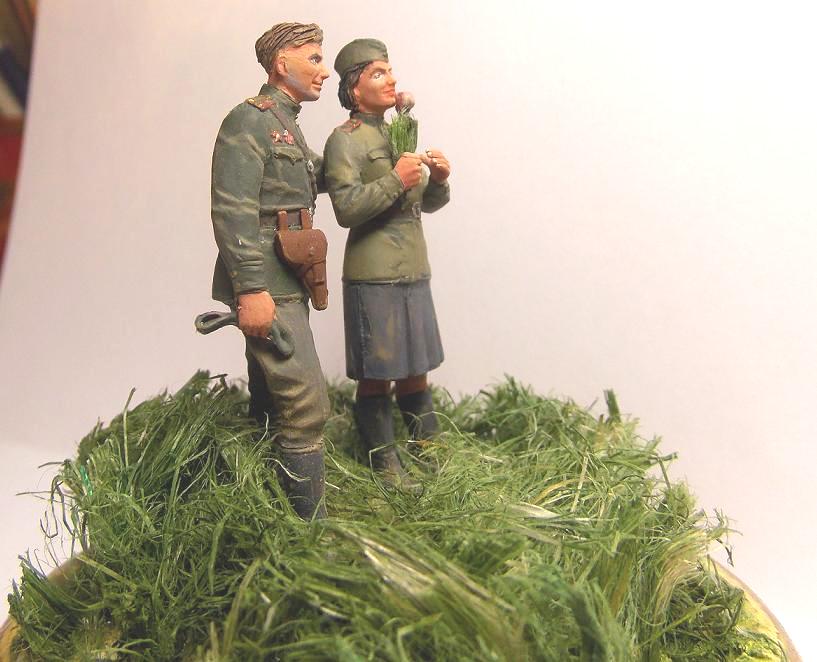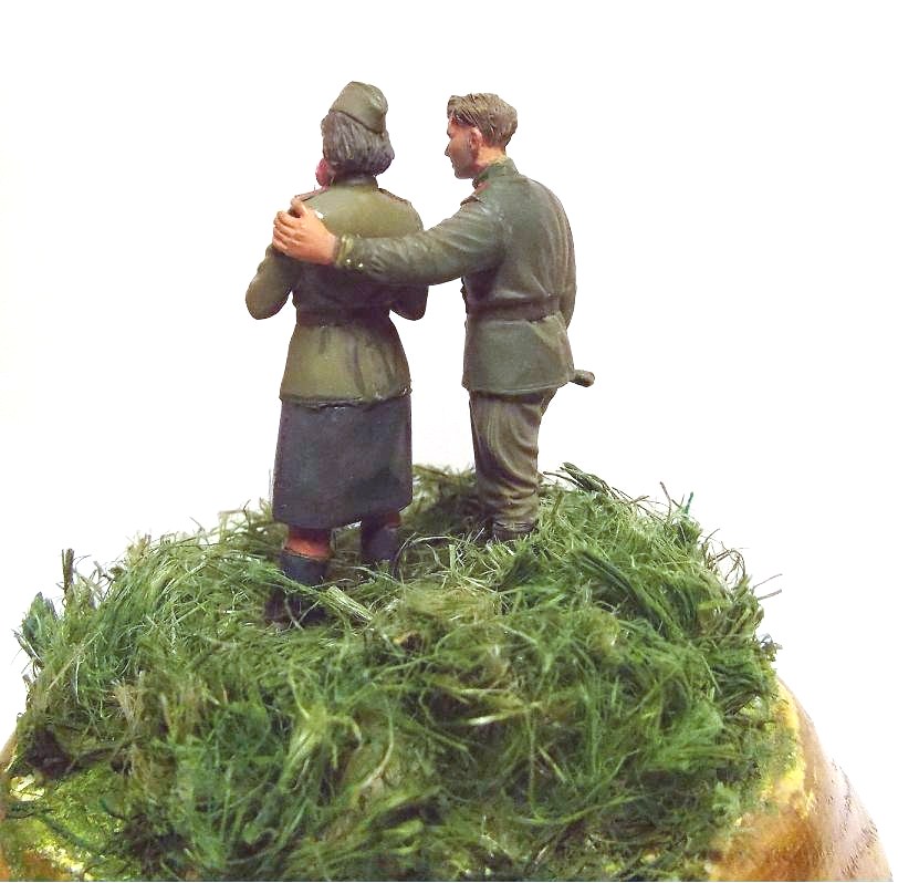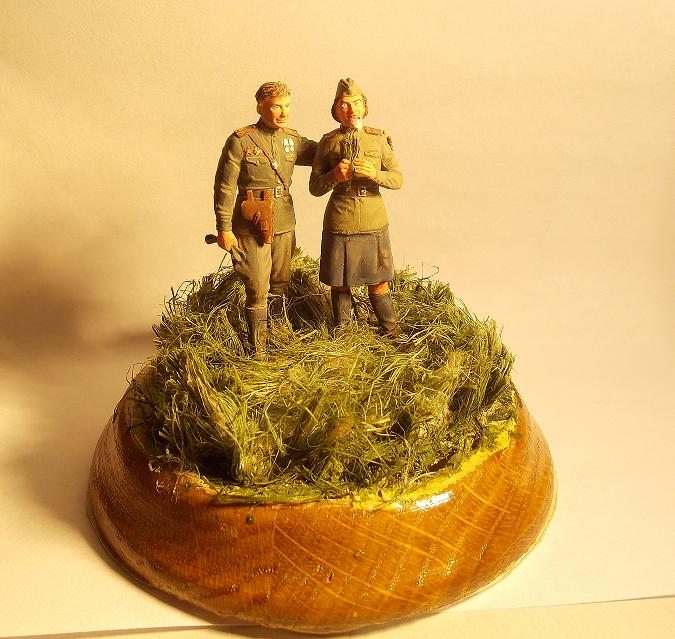 Фигуры из набора от фирмы ICM. Роспись фигур осуществлял темперными красками (Невская палитра). Трава выполнена из сантехнического льна.