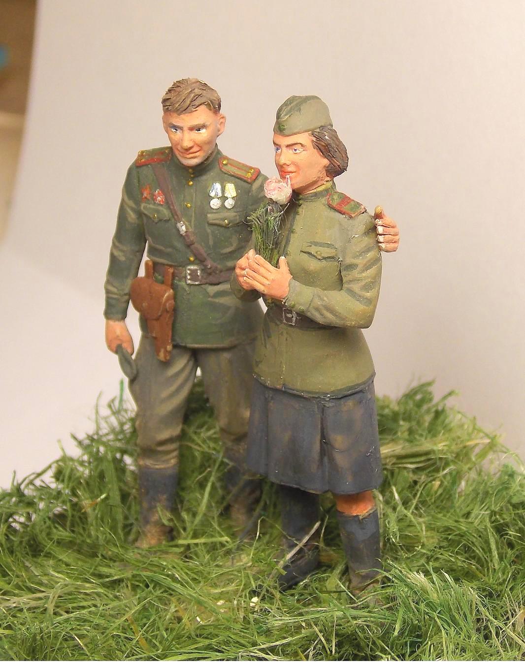 Важно сказать, что это моя первая виньетка и я только начал осваивать технику создания травы и ландшафта. Но конечно же, главное внимание я сосредоточил на героях работы. Значительное время уделил тщательной сборке фигур, их доработке и росписи. При создании образа лейтенанта я решил поставить другую голову из тех, которые были в наборе, т.к. по выразительности и настрою она больше всего подходила. Специально не стал добавлять кучи дополнительных элементов из набора, они бы были просто ни к чему.
