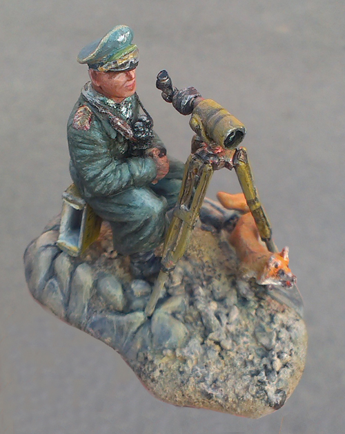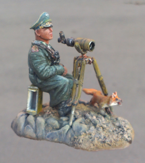 Первая самостоятельная работа в 35-м масштабе. Материал - Cernit, краски - темпера и акрил "Невская палитра", при создании подставки добавил речного песка и гальки.