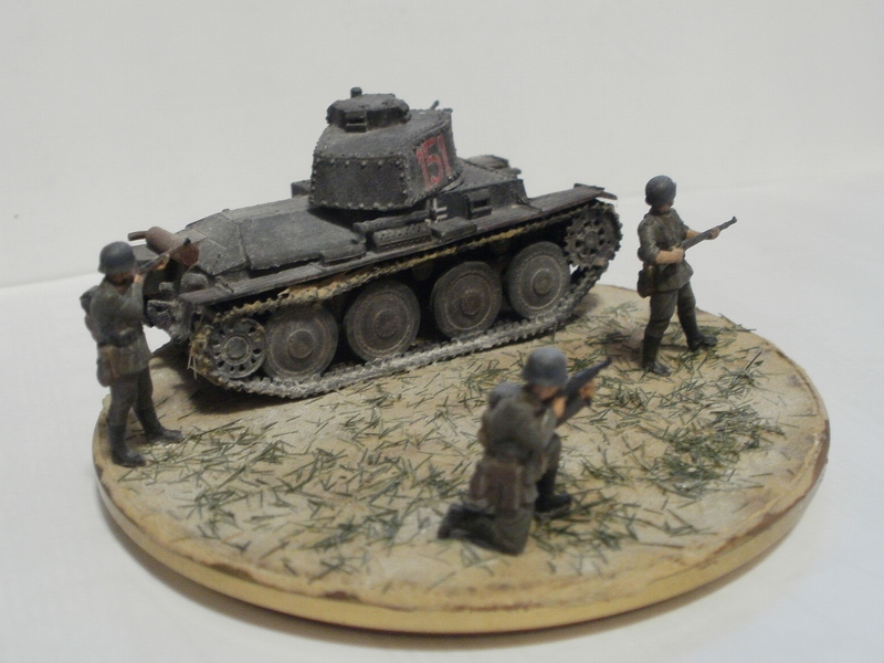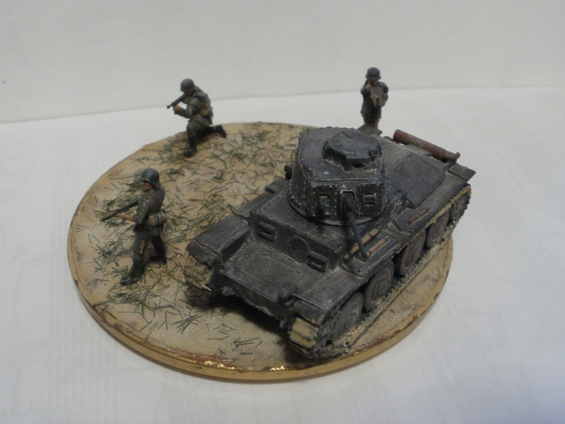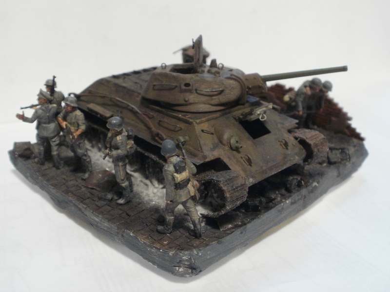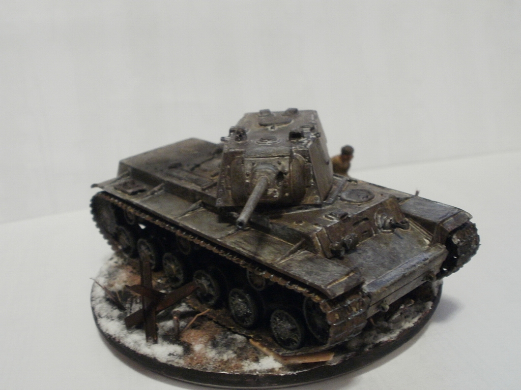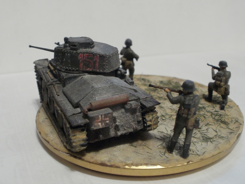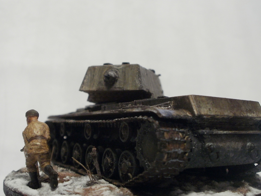 Денис Ашхацава Wrote:На мой взгляд фигурка бойца лишняя. Вроде и не противоречит по композиции, но какой-то он тут чужой. Танк на основании самодостаточен.