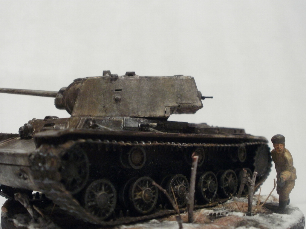 кв-1 trumpeter, боец из ревеловской 34ки, глина jovi, трава из брикетов для розжига, проволока,веточки, сода+пва