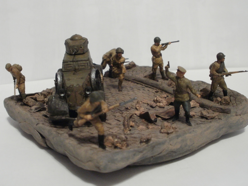 Денис Ашхацава Wrote:Не знаю как точно выразится: очень "уютная" что-ли работа, очаровала. Компактно и фигурки не мешаются, всё на месте, ни пустот нет, ни излишней толчеи. Бой в городе: раненых тащат с одной стороны, противника ждут с другой - атмосфера чувствуется.