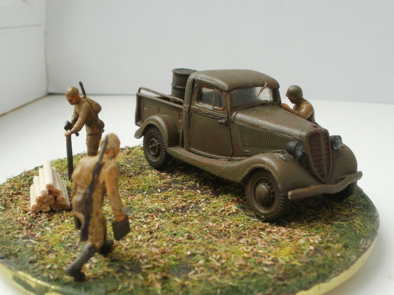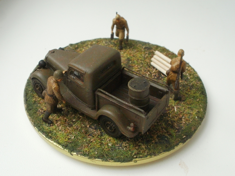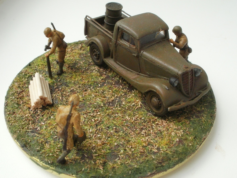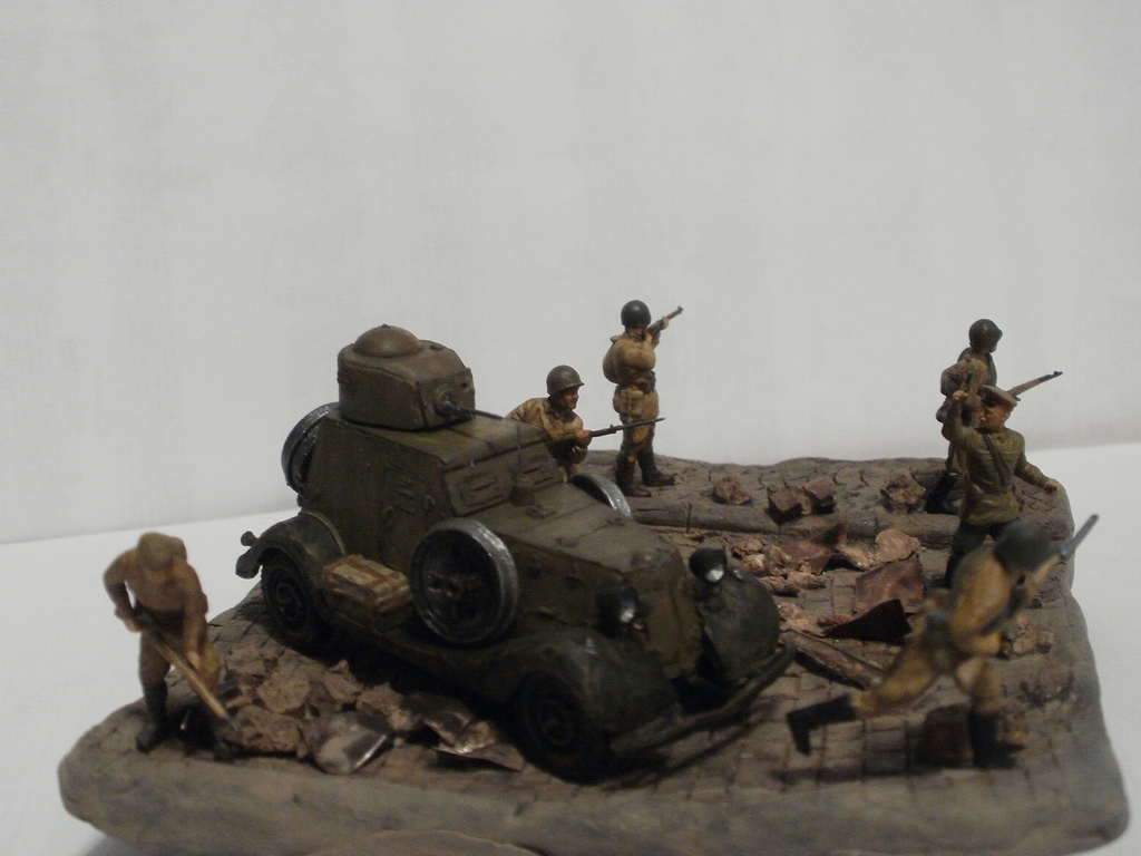 использовались наборы "Звезда" и UM, крышка от банки, шпатлевка, неудачная попытка изобразить разбросанное сено-конский волос, краски "звезда"