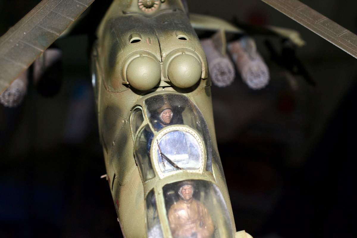 Если первым зашла речь о борте МИ-24, то куплен в Питерском интернет-магазине http://www.modelsworld.ru/shop/category997.php . Пилоты 5,45 куплены куплены также по интернету. Причём выбора не было купил двух по одному артикулу, а на деле оказалось пилот и штурман, только стойка одна. Чтобы усадить в кабину вертолёта пришлось их искупать в кипятке. Сразу поддались, без претензий. Как получилось Вам всем судить.
