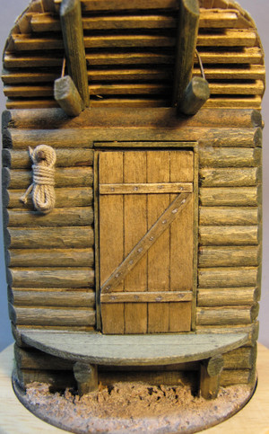 Здорово получилось, очень необычная копмозиция. Только не пойму крыша - черепица? Мне, кажется, раньше использовали плотно подогнанную доску или солому.