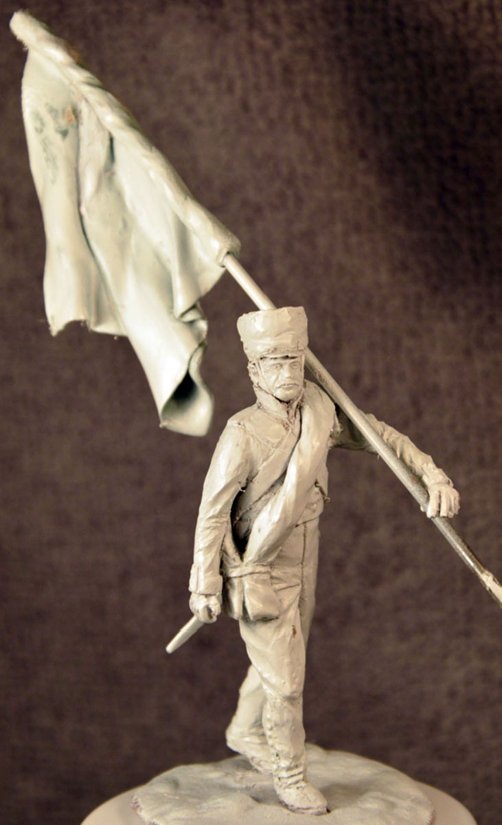 Решил отправить отправить на этот форум свою работу.Масштаб 54мм.Знамя,оружие из зелёнки.кивер сделал в чехле,Навершия знамени пока нет,так как пока не получилось,слишком для меня сложно.Грунт залился как то плевками,так и не могу понять почему.