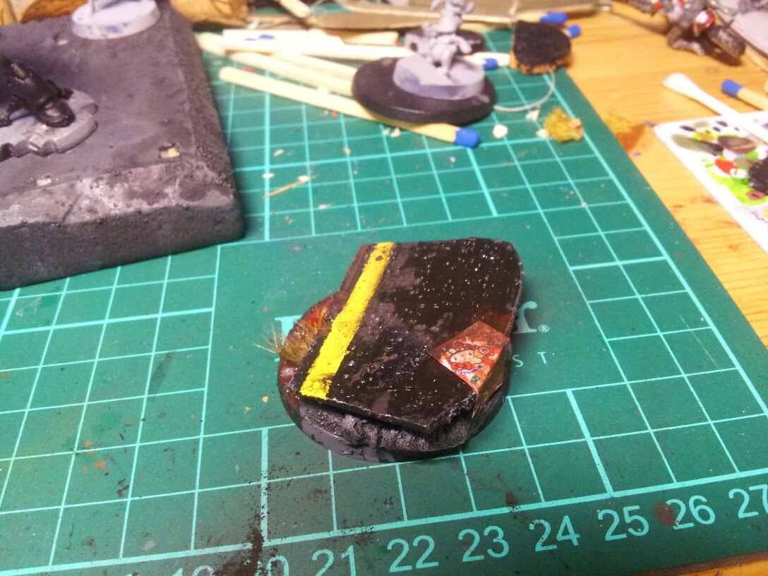 Материалы: стандартное основание из пластика, ПВХ, оргалит, рандомная толстостенная пластиковая трубочка. Трава из набора от Арми пеинтера