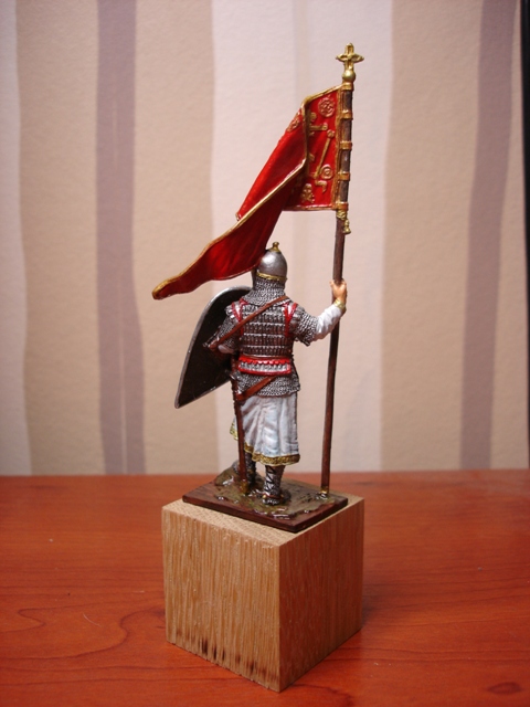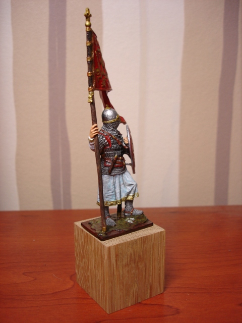 Фигурка от Кастинга, первый опыт покраски фигурок, до этого когда-то давно пытался красить бронетехнику. Покрыта праймером mr. Hobby, краски - Тамиевский XF акрил, который оказался слишком глянцевым, даже матовый лак не помог. Сейчас купил "Ладогу" и кисти 0 и 00, эту раскрашивал 1 и 2.