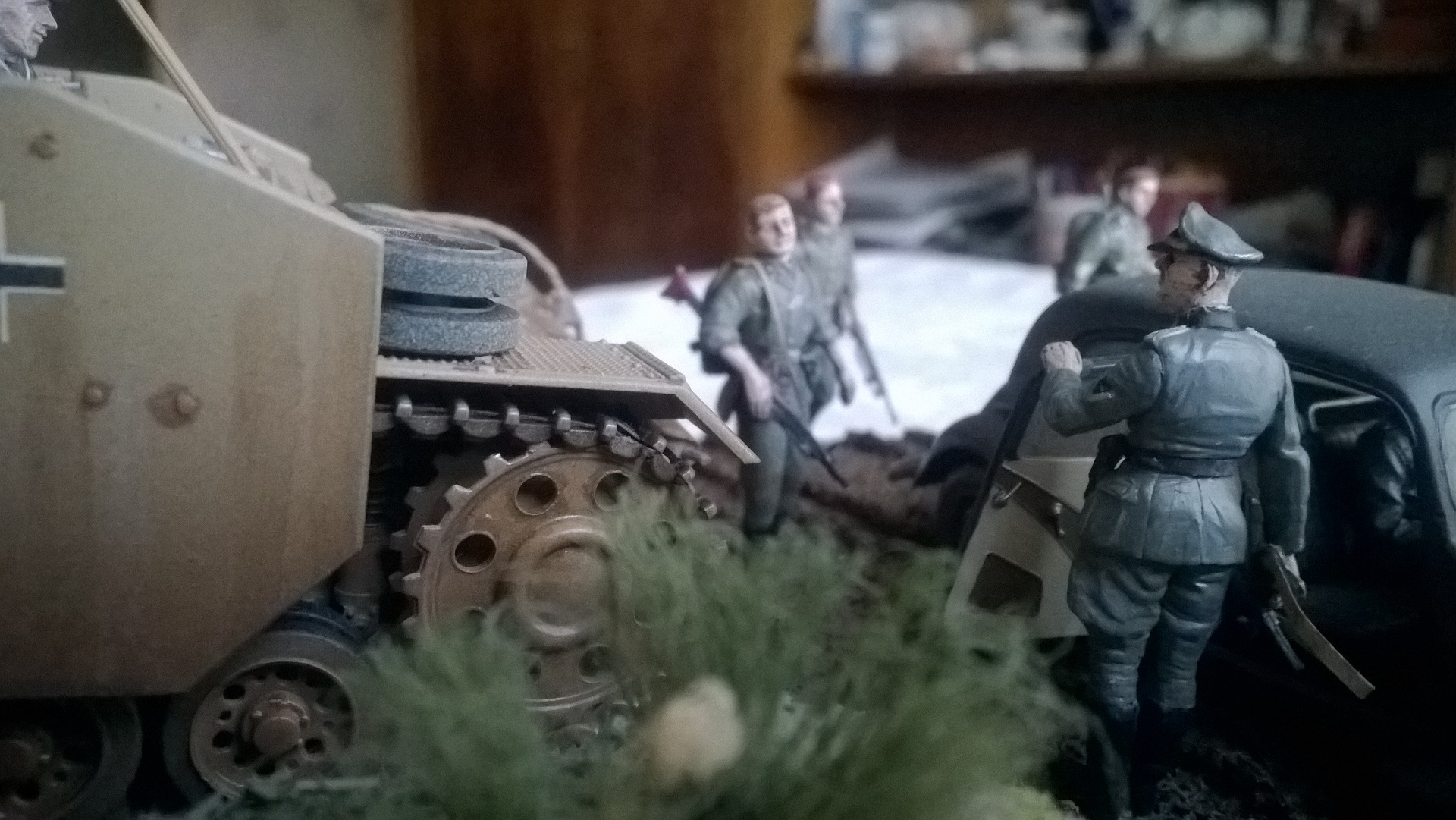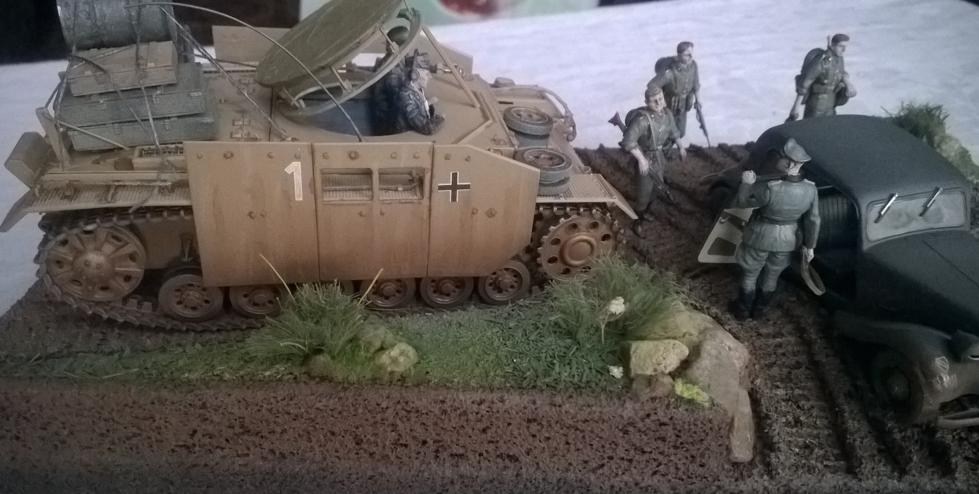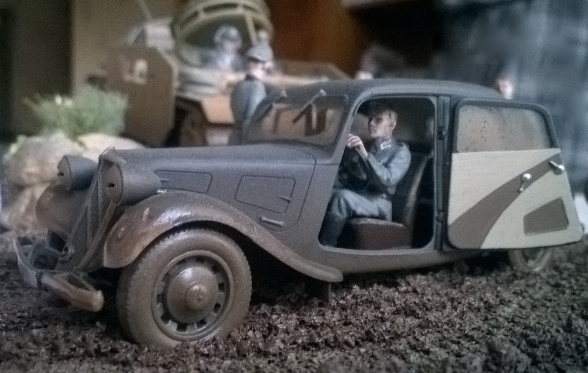 Использован вспомогательный подвозчик боеприпасов на базе среднего немецкого танка T-IVG <звезда>. автомобиль Citroen <tamiya>.краски AKAH