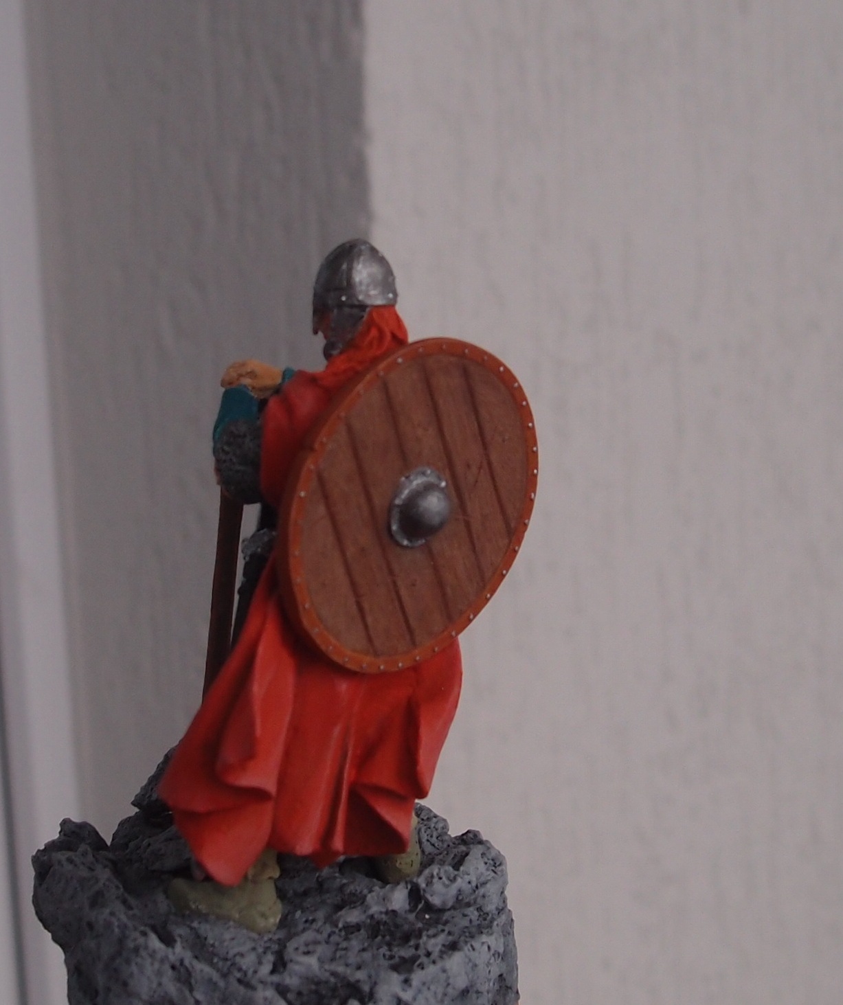 6. Так как быстро стало понятно, что фигурка не удалась решил устроить на ней плацдарм для различных эффектов, попробовал более темной разведенной красной краской сделать затемнения в складках одежды, на мой взгляд для первого раза неплохо получилось.