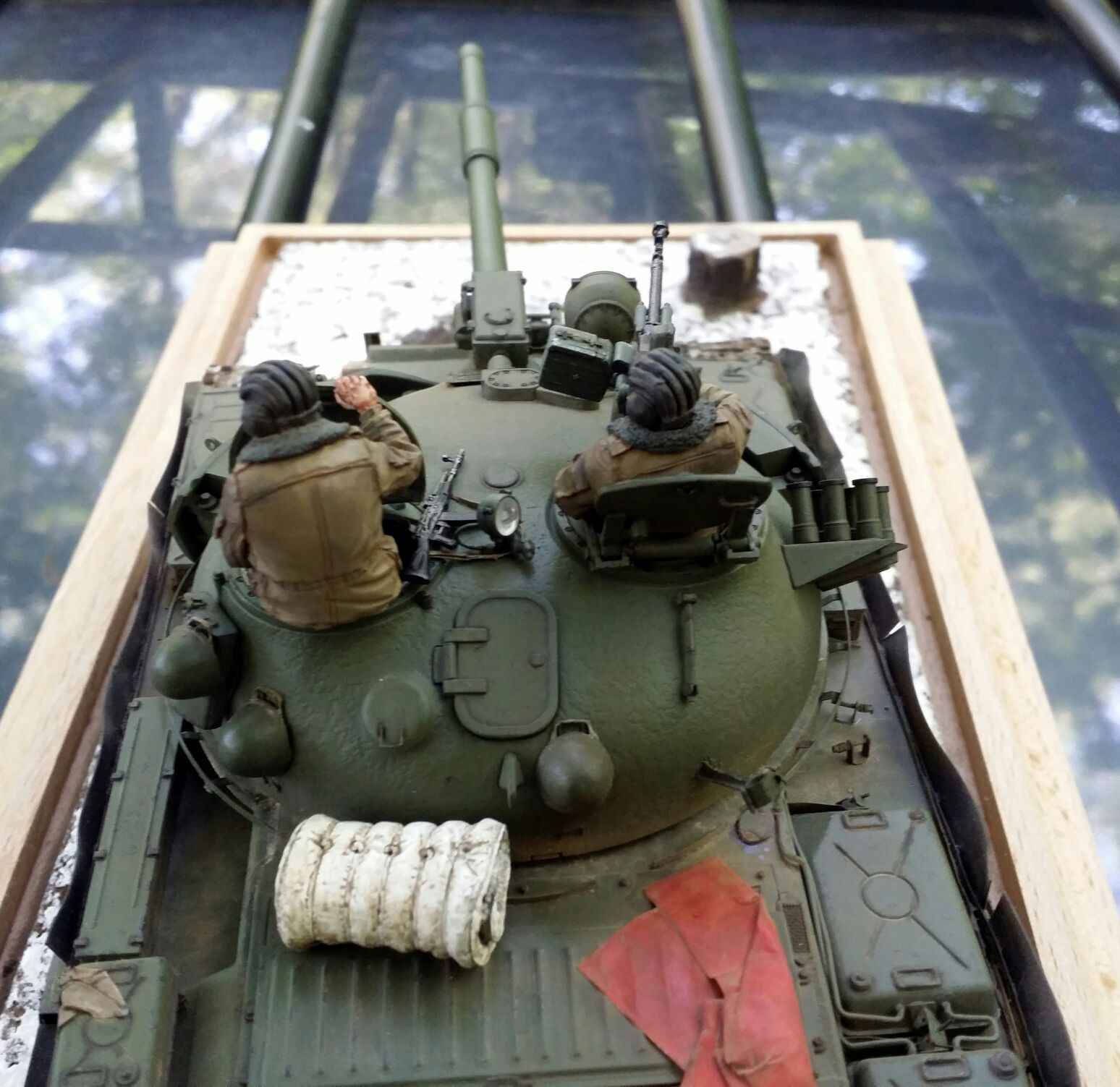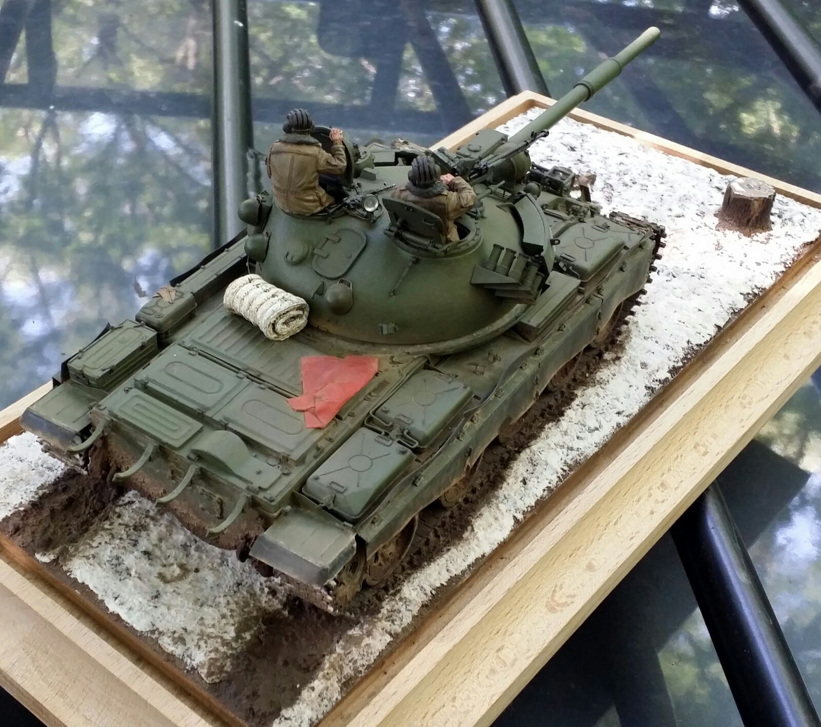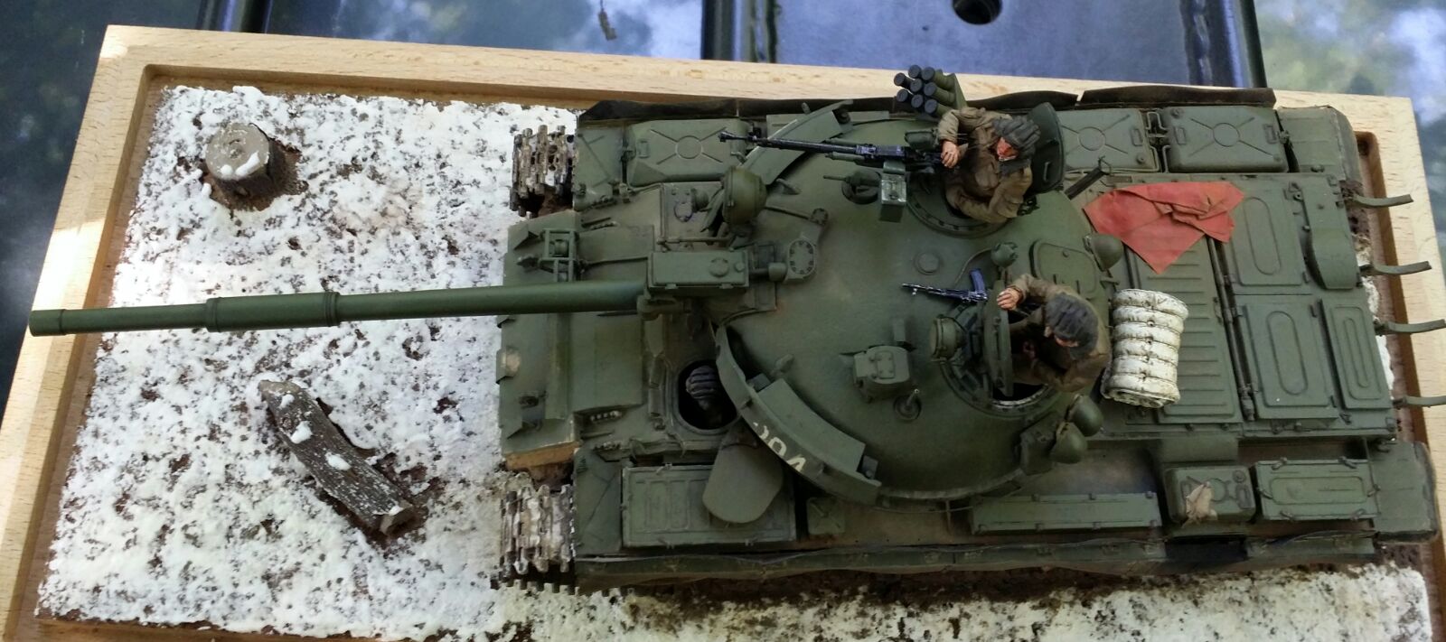 Здорово!Про покраску не буду писать,так как я не умею. но вот что бросилось в глаза-что многотонный танк стоит на земле,а гусеницы не провалились в мягкий грунт