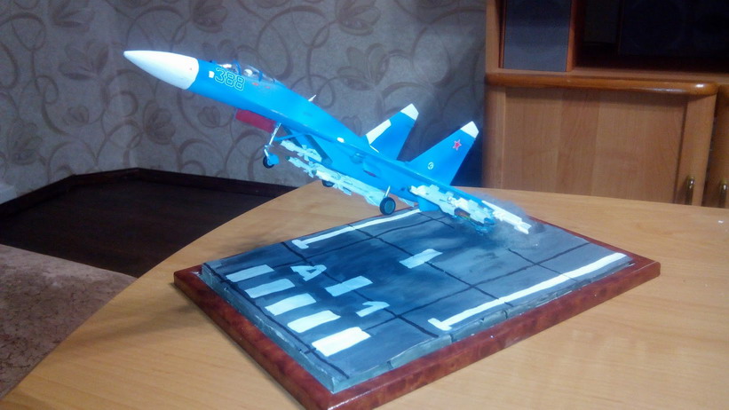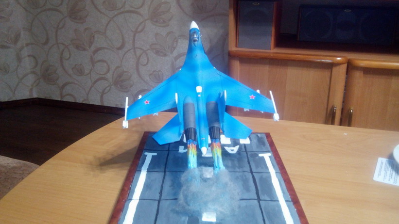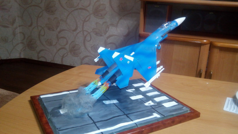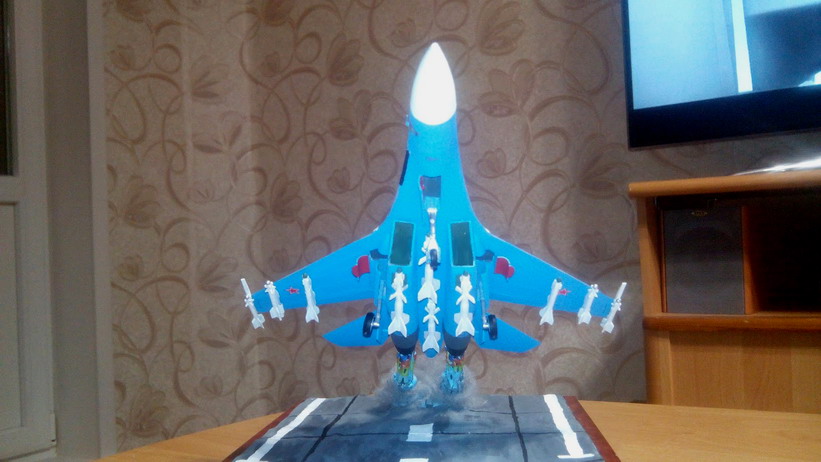 По поводу угла взлета. Как проведший половину детства на аэродроме ответственно заявляю - угол может даже маловат. Закрылки и хвостовое оперение, конечно, надо было при сборке выставить в соответствующие углы, но на момент сборки делать взлет не думал... Когда без боекомплекта взлетают - так вообще шалят.