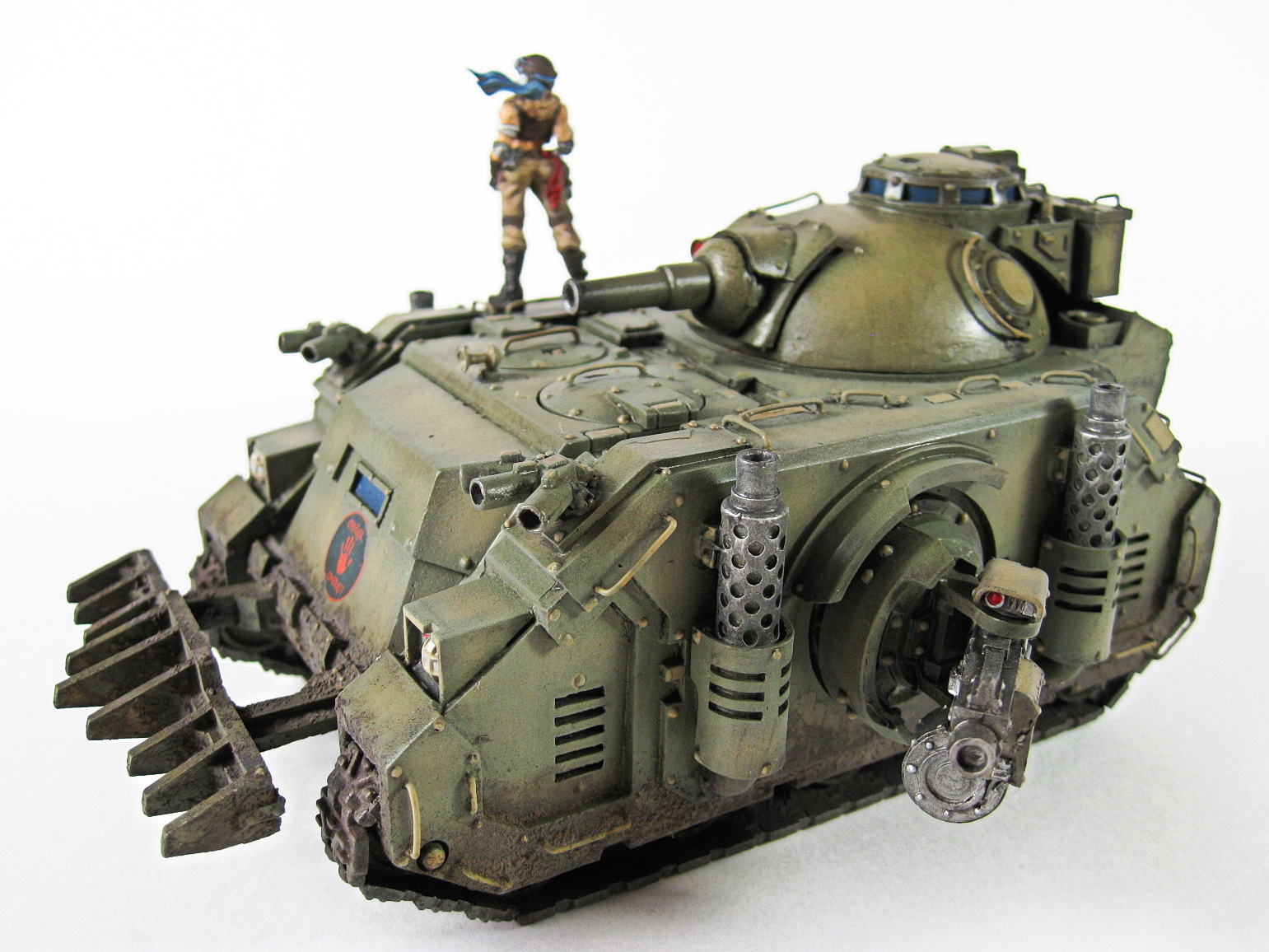 Здравствуйте. Вот склонил меня приятель к такой теме) Приобрел этот кит в компании Heresy Forge. Открыл пакеты и не захотел делать ваху. Вспомнилась книга Стругацких "Парень из преисподней". Так что получился батальон бронеходов ("Голубые Драконы") "Дочери Алая", организационно входившая в бригаду Гагрида, при выдвижении в устье Арихадны по рокаду, не попала под бомбовый удар. В результате сохранности матчасти и личного состава, блокировала продвижение подвижных подразделений имперцев, не допустив захвата узловых пунктов рокадной дороги в большой излучине. Следствием чего явилось нанесение последующего контудара и выход на оперативный простор войсковой группы генерала Дорра. Вот такая легенда)))